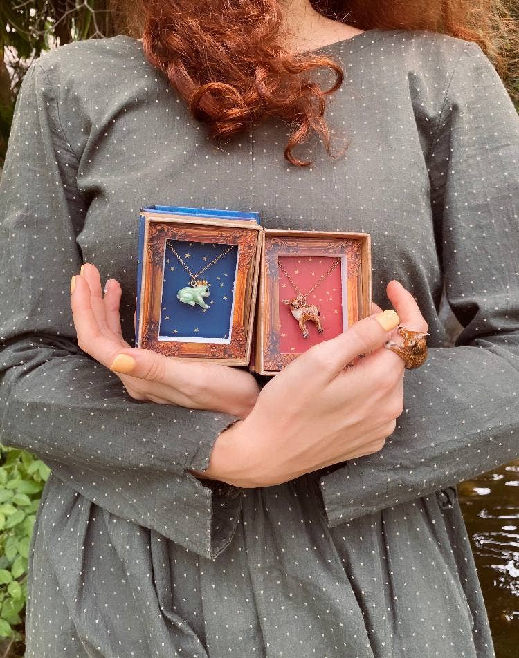 Necklace; Axolotl By Camp Hollow (Hand-Painted Porcelain, 24K Gold Steel Chain)