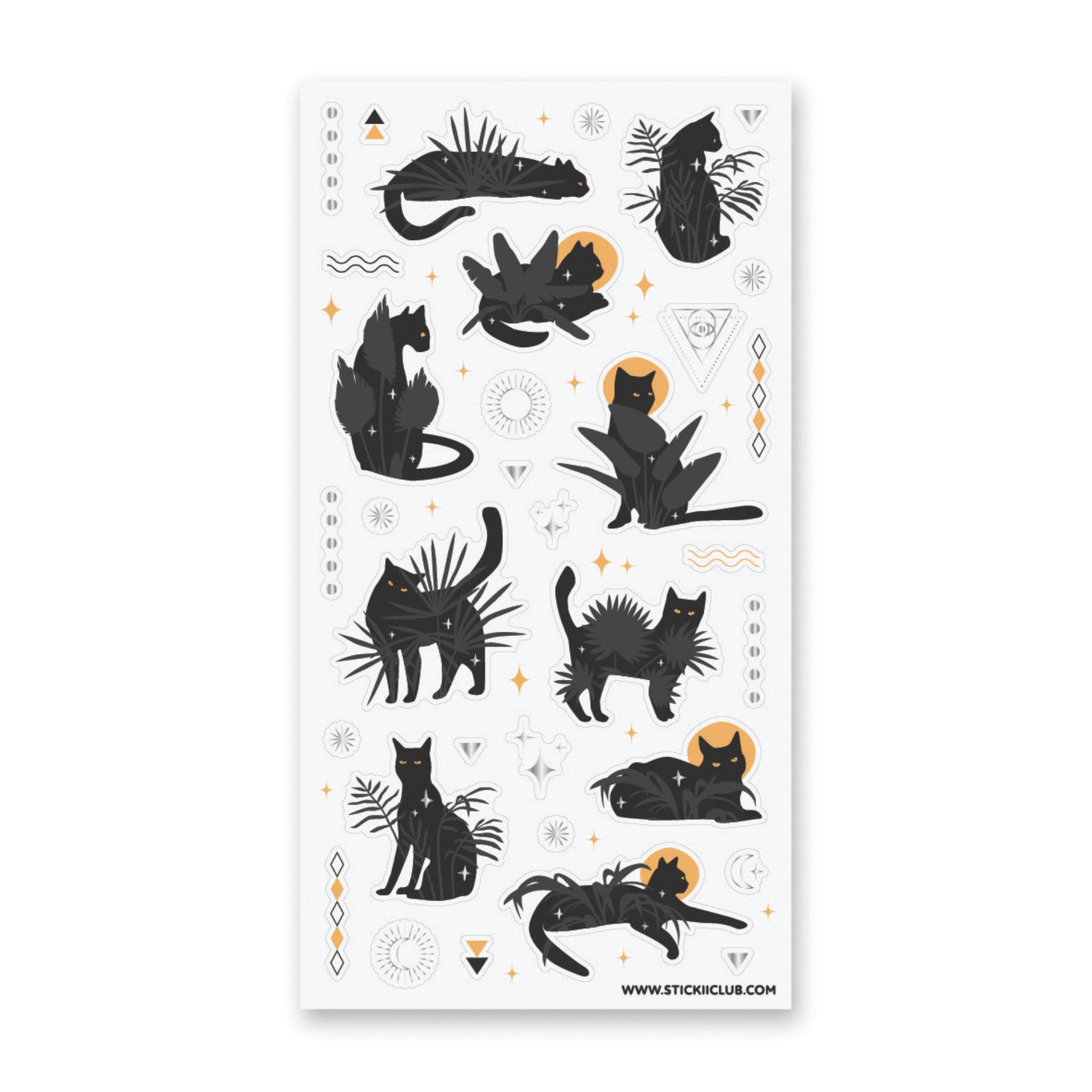 Adorable and majestic, all cats are different, and these black cats are certainly beloved! Adorned by plants, stars, and the sun, these sparkling beauties will add a mystical feline touch to any page.