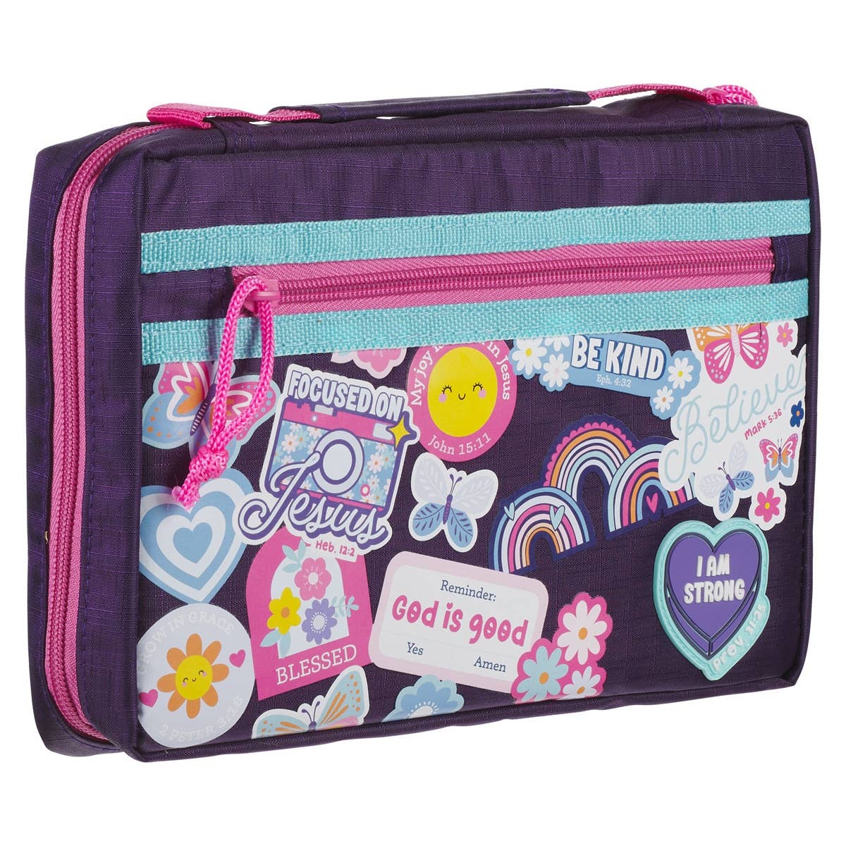 The Shine For Jesus Fashion Bible Cover is a fun way to protect your child's Bible and make a bold statement of faith. The fun sticker design of the Bible cover will remind them to shine for Jesus in all they do.