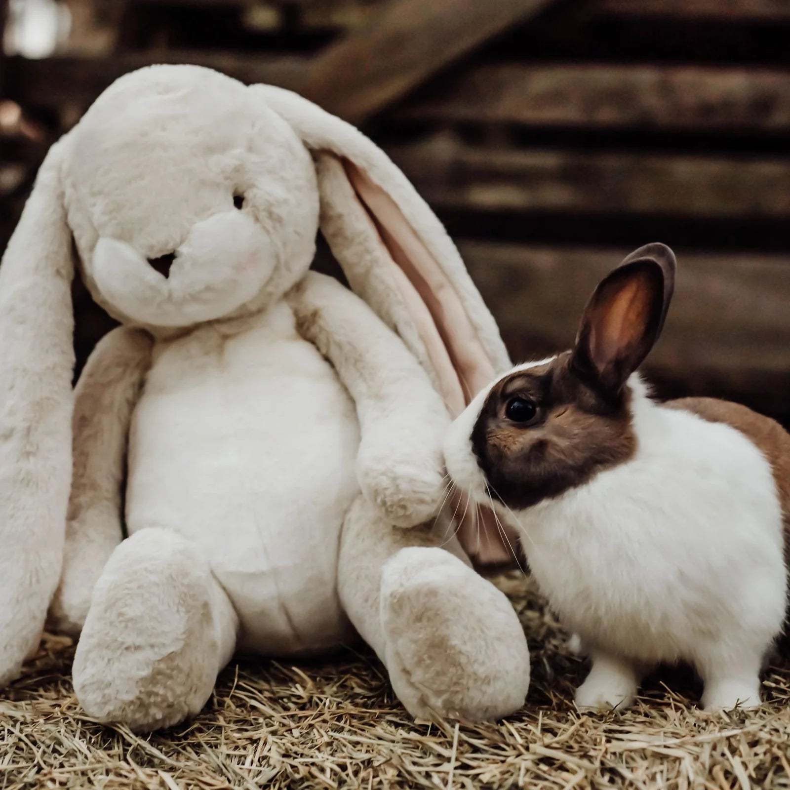 Meet Big Nibble Bunny! Huggable, luggable and simply adorable. Nibble’s long lop ears are buttery soft and perfect for soothing away worries. Dreamy Sugar Cookie fur, warm white tummy, tail, and muzzle.