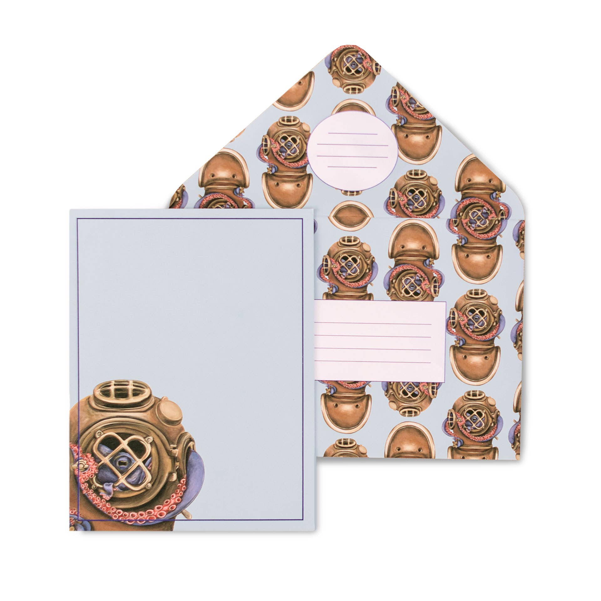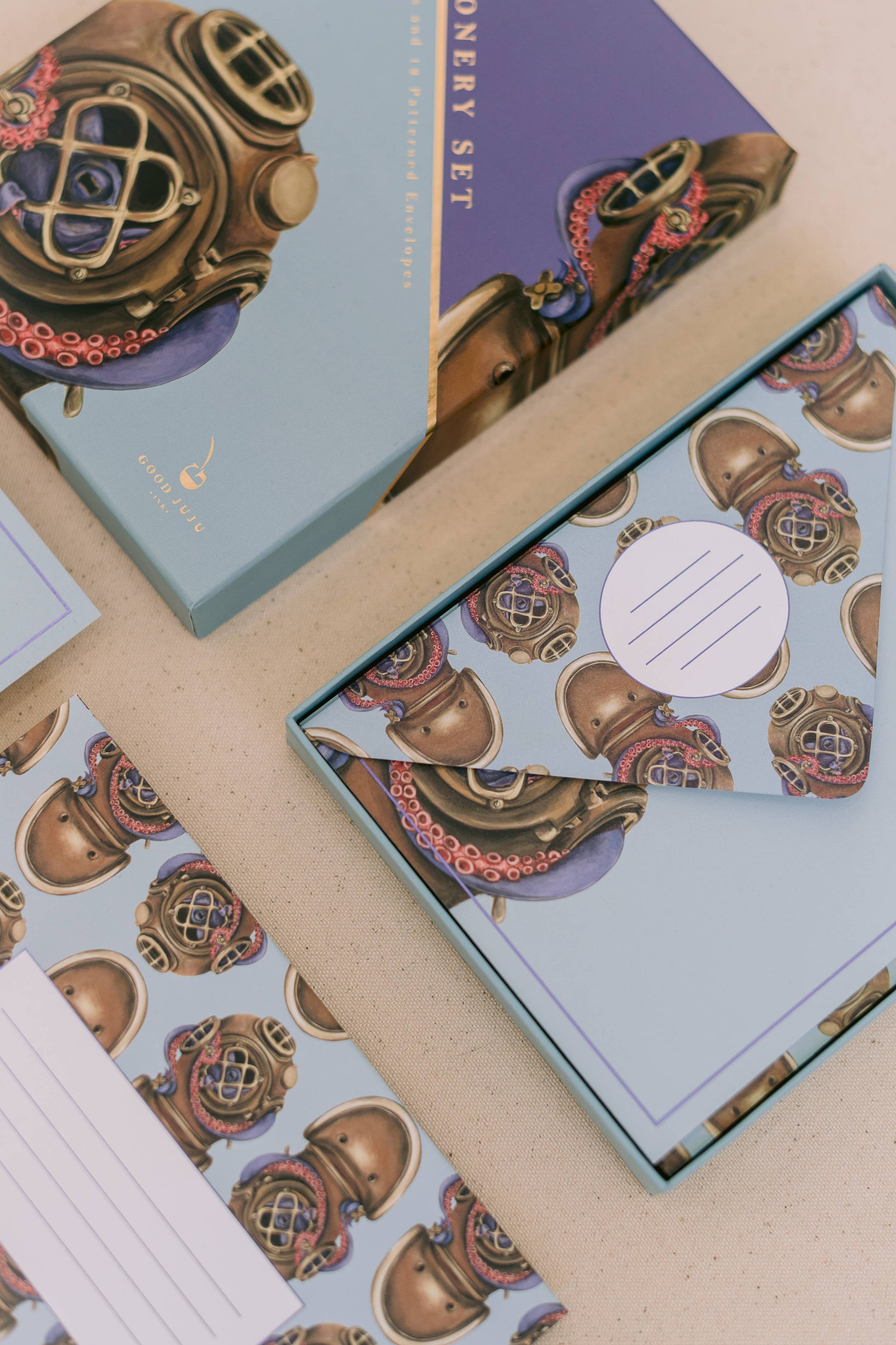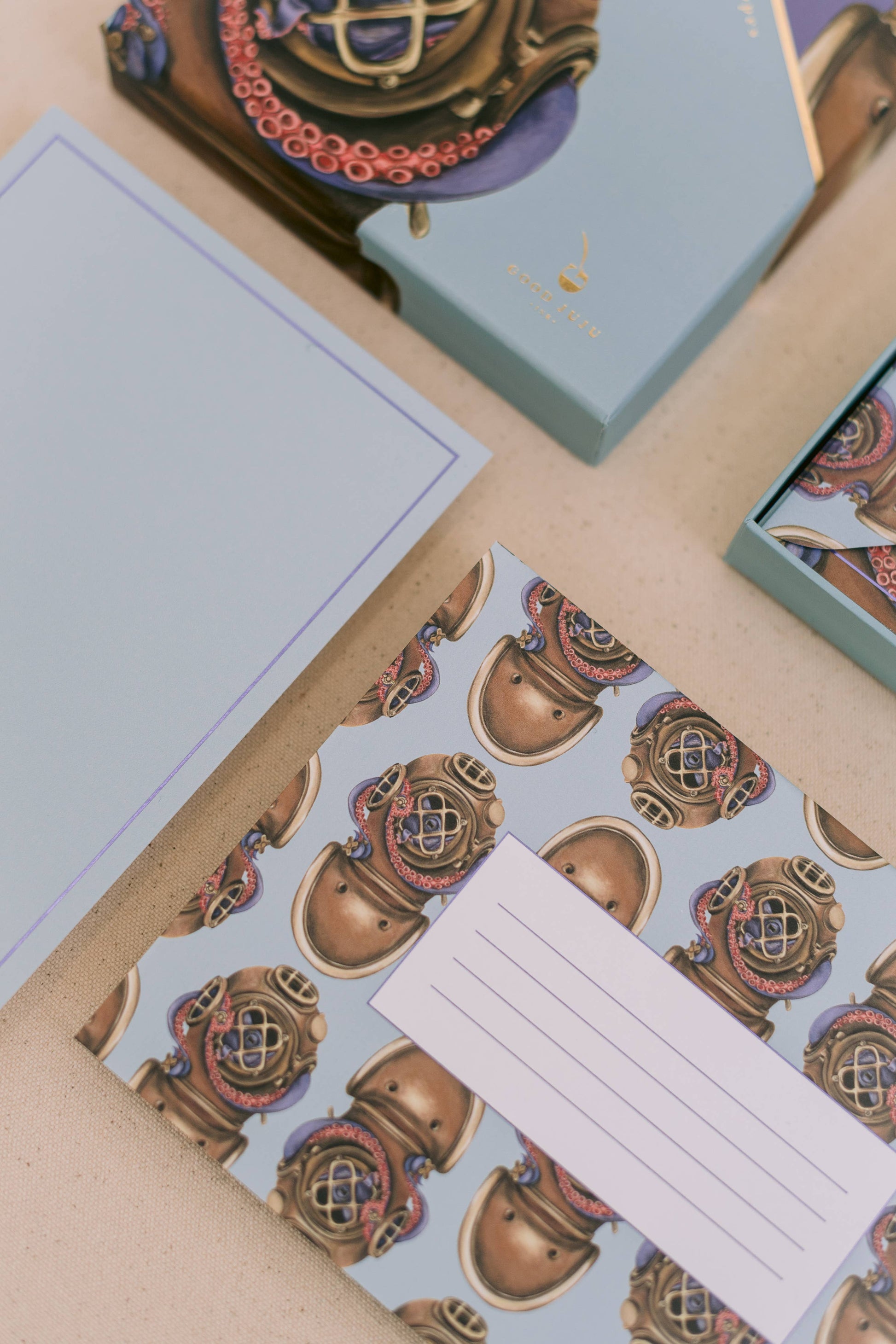 Boxed Stationery Set; Blue Octopus Diver (Set of 12 cards)
