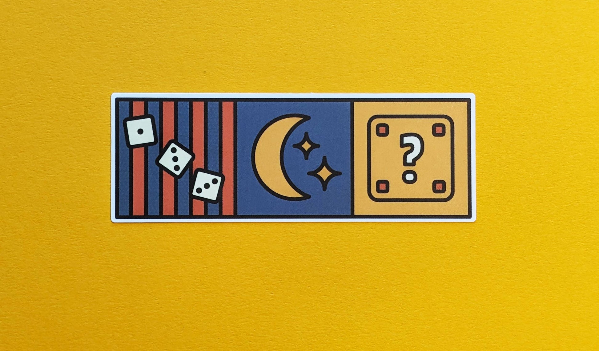 These high-quality stickers include items you'd find during game night. The sticker sheet includes 20 stickers featuring things like dice, meeples, playing cards, and more. Stickers range in size from 1" to 3".