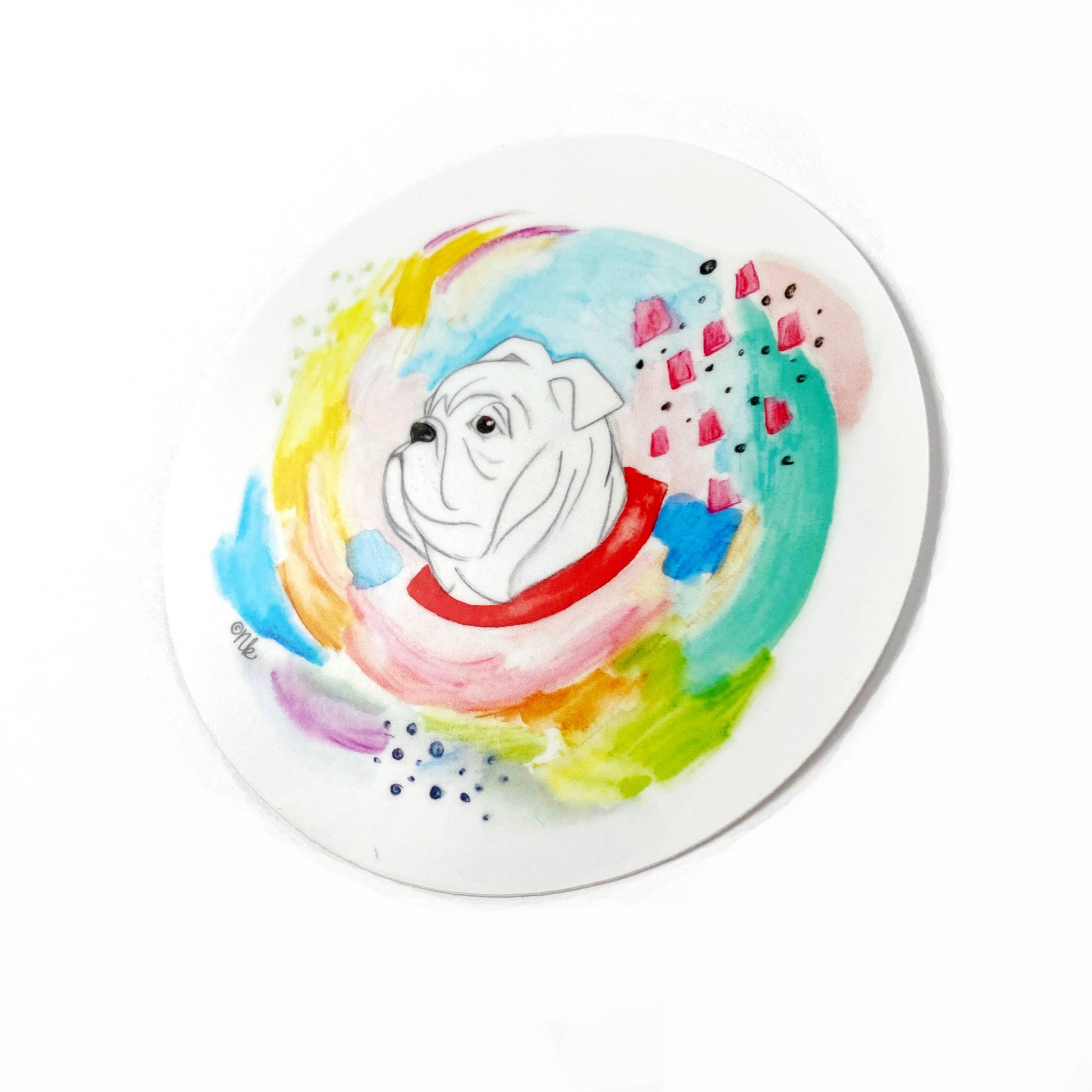 Vinyl Sticker; Watercolor Bulldog By Natty Michelle Paperie