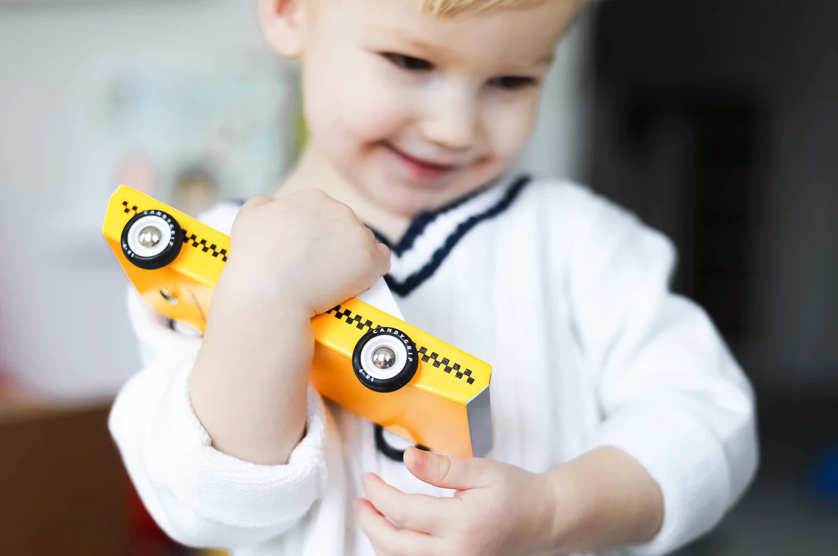 This bright yellow taxi is always eager to "follow that car", and now you can have consequence-free wooden fender benders. You won't find a more durable cab in all of New York City!