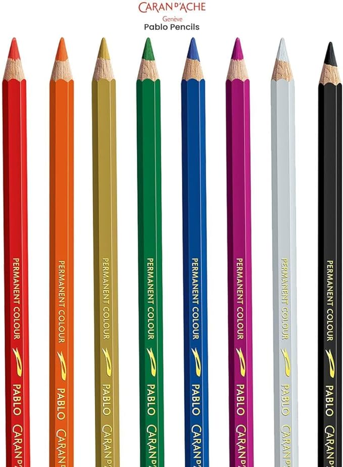 Pablo permanent colored pencils from Caran d'Ache match the superior quality required for color drawings, while the precision of Pablo leads is ideally suited to realist drawing. The dry, 3.8 mm diameter leads, based on a formula ensuring exceptionally high covering power and creating no powder whatsoever. Artists, technical designers and professional teachers can rely on the exemplary lightfastness of the leads, as well as their perfect opacity.