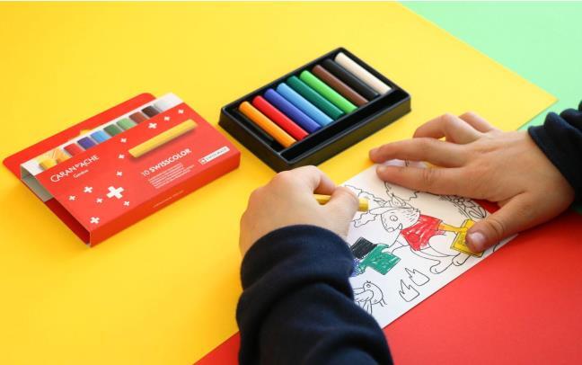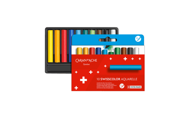 - A cardboard box of 10 Swisscolor Aquarelle water-soluble wax pastels