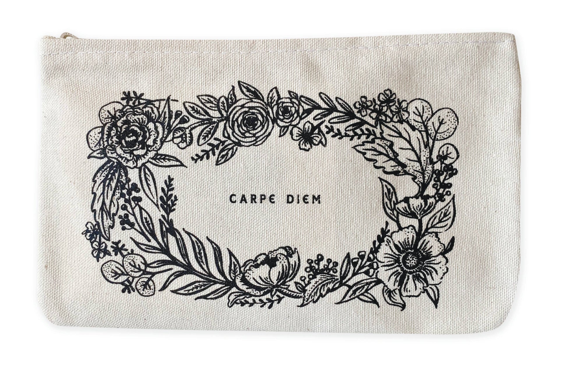 Zipper Pouch; Carpe Diem Floral (Canvas) By 2021 Co.