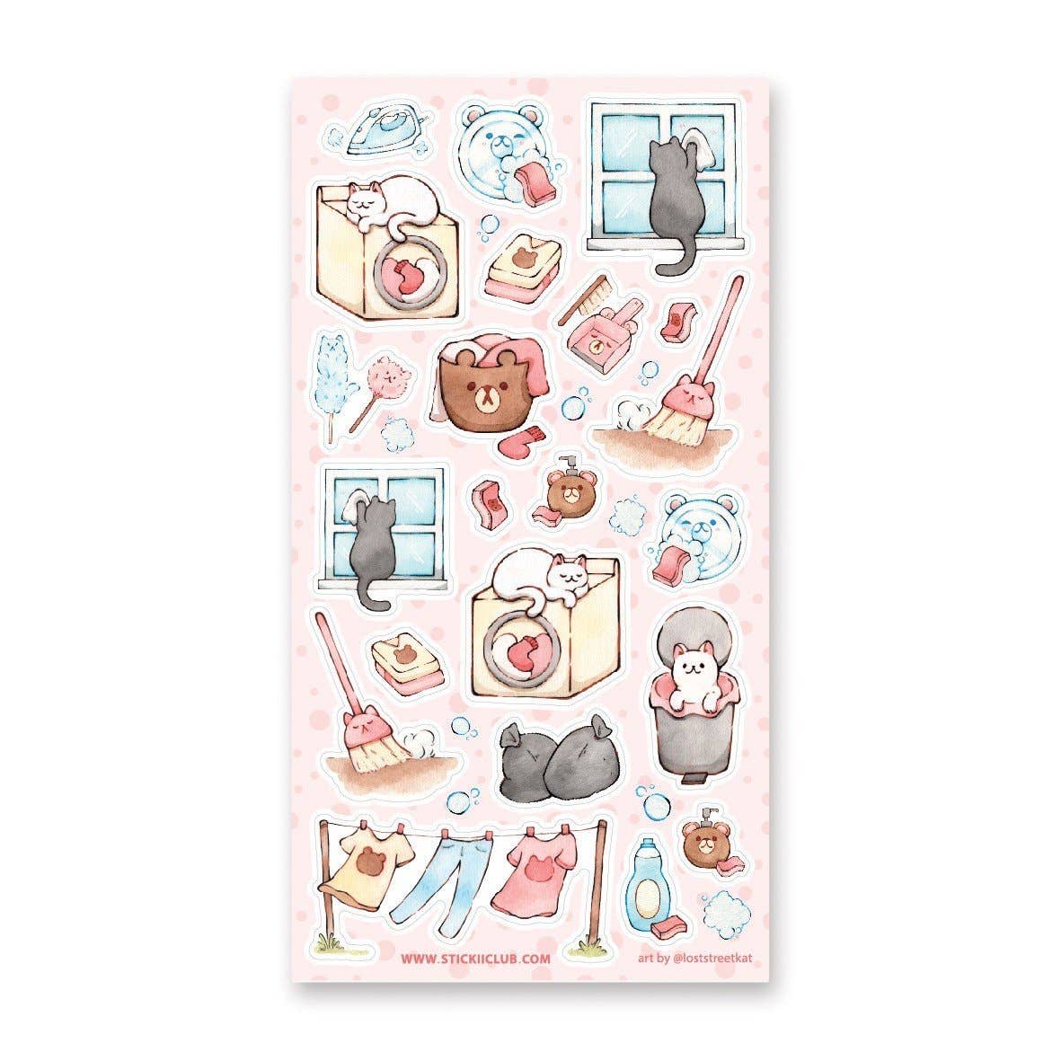 Hardworking cats getting some of their chores done! Art by: @loststreetkat Top Coating: None Adhesive Layer: Paper Backing Layer: Paper One sticker sheet is included. 6.69" x 3.54". Weight - 0.03lbs.