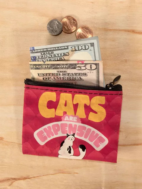 Coin Pouch; Cats are Expensive (95% Post Consumer Recycled Material)