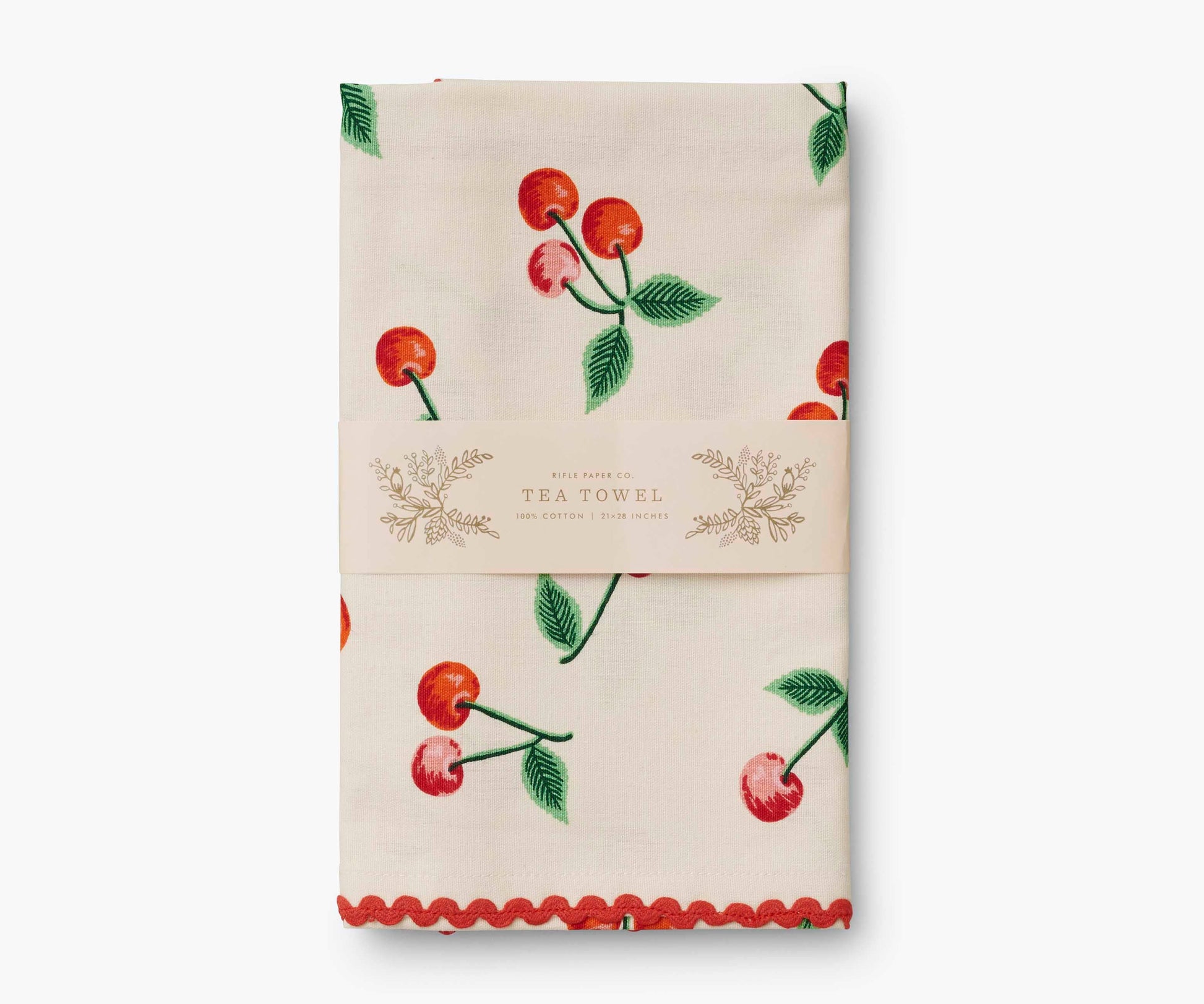 Introduce color to your kitchen with an embroidered tea towel featuring a ricrac border. Line a basket, dry dishes, or simply display to serve up serious culinary style.