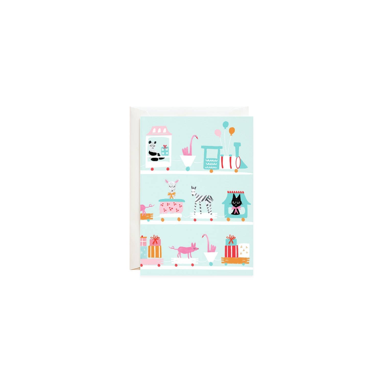 Mr. Boddington's hand-drawn petite cards are a delight for gift enclosures, secret little notes, or to make a package more whimsical. This colorful train card will surely brighten anyone's day!