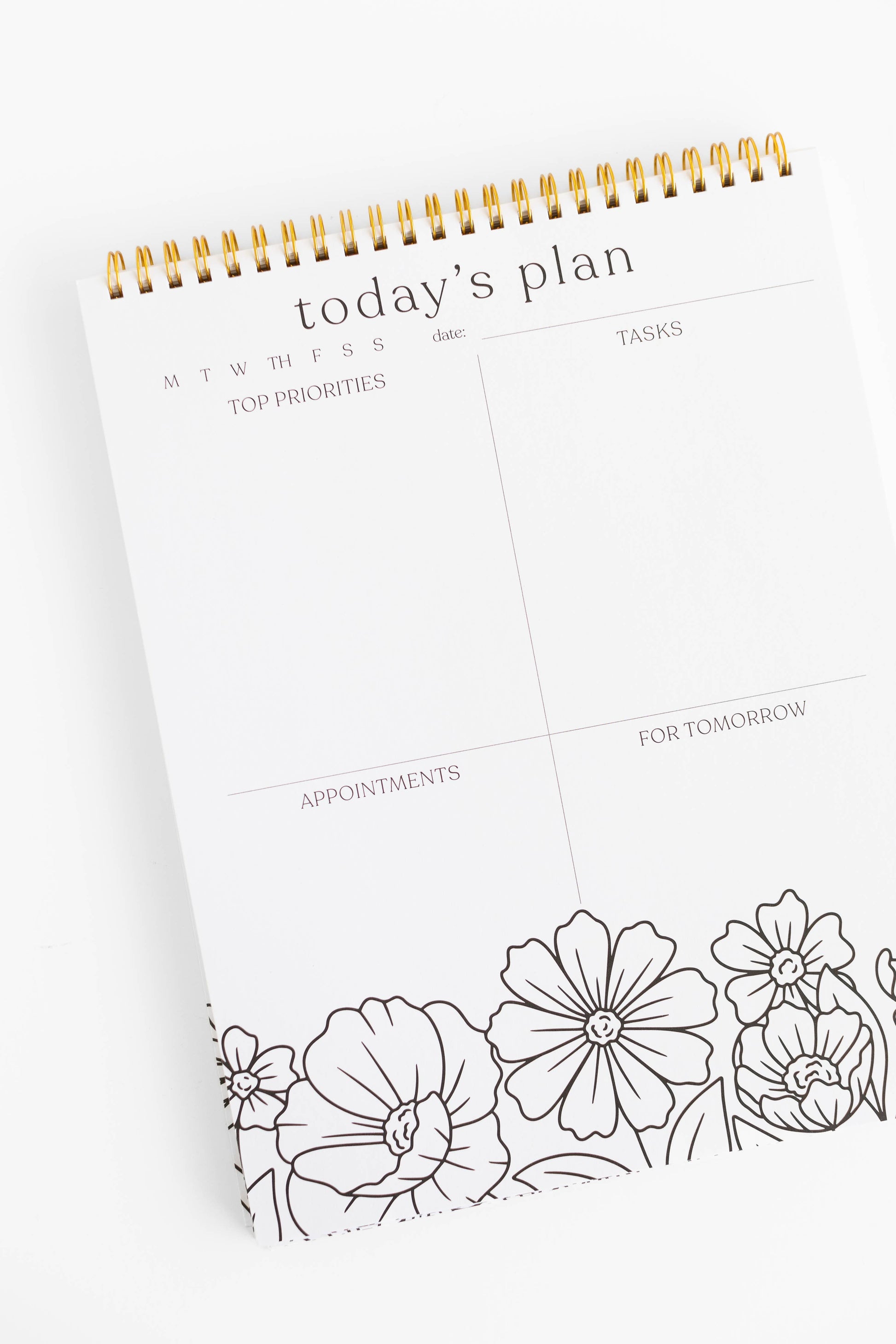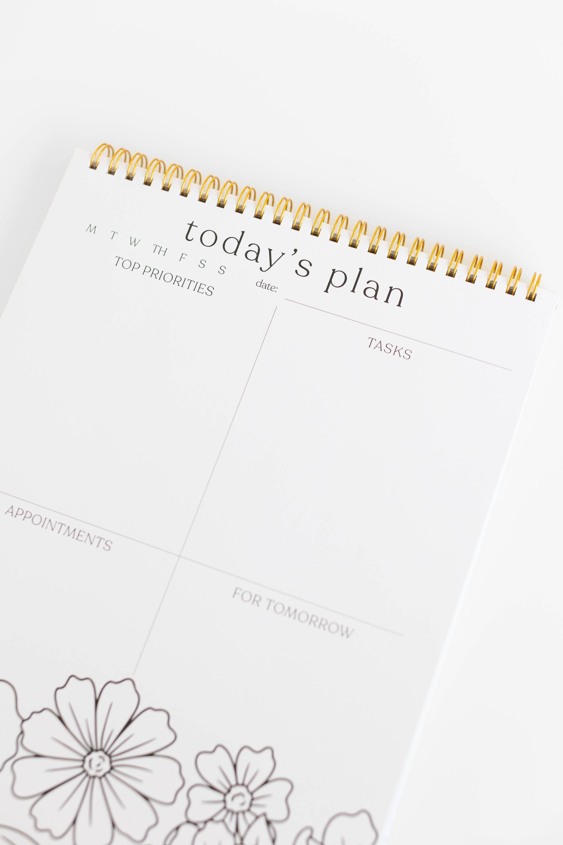 This Color-In Daily Planner is designed to seamlessly blend creativity into your daily routine. Whether you're scheduling appointments, jotting down notes, or sketching out ideas, start by adding a splash of color to your day. With its top-bound spiral binding, flipping pages is effortless, ensuring smooth transitions as you navigate through your tasks and creative endeavors.
