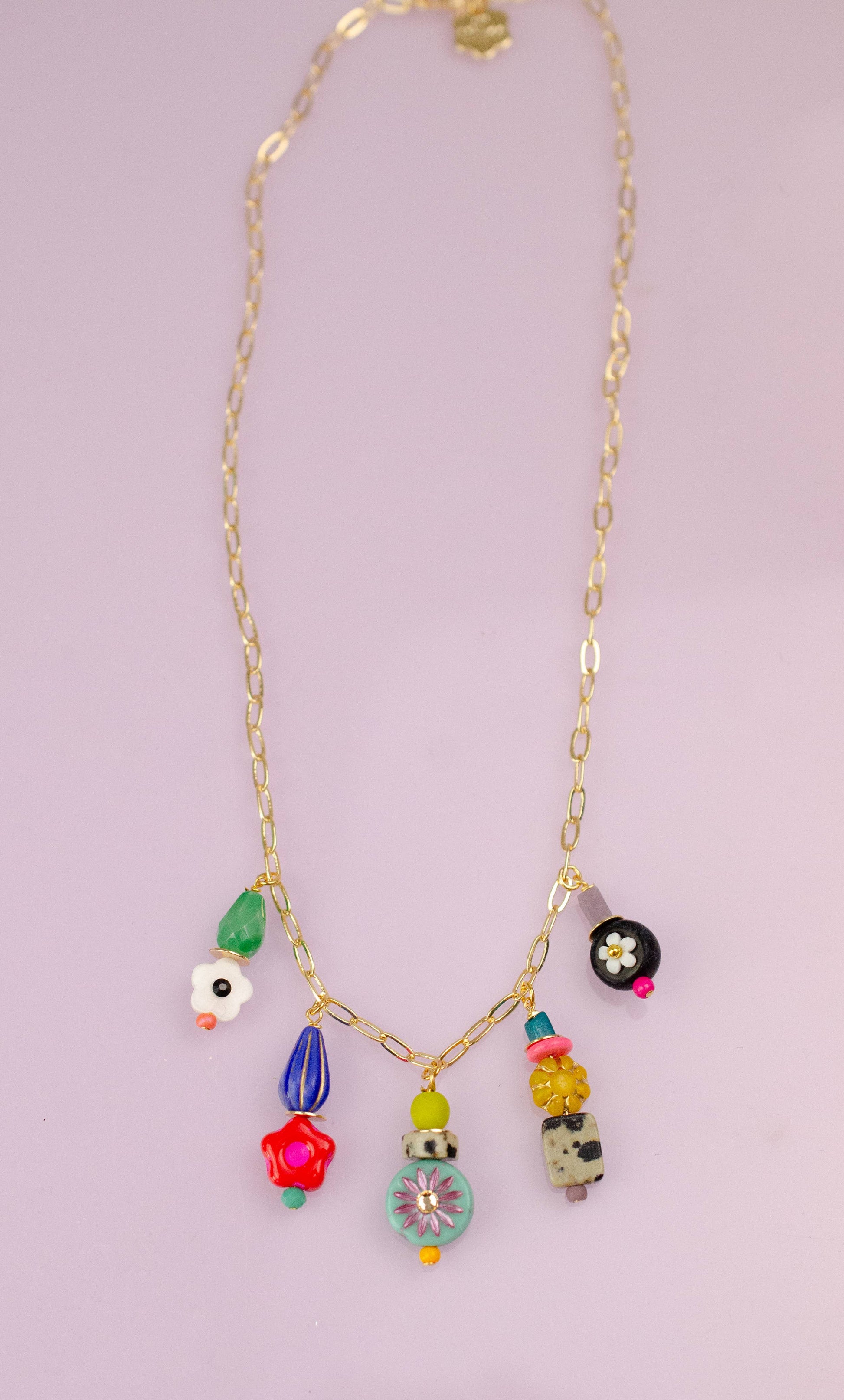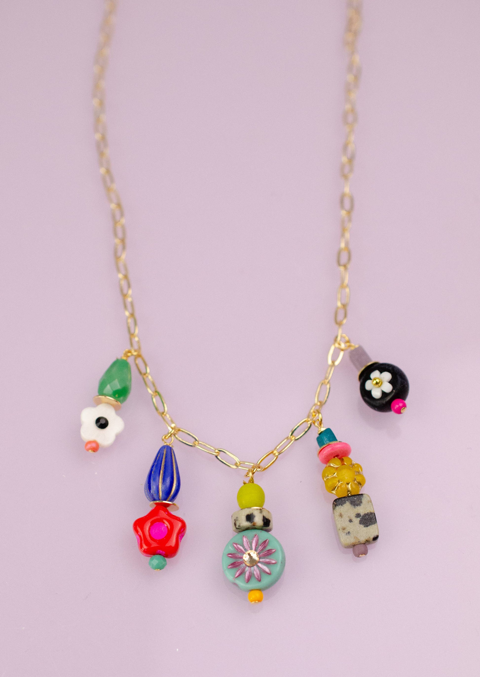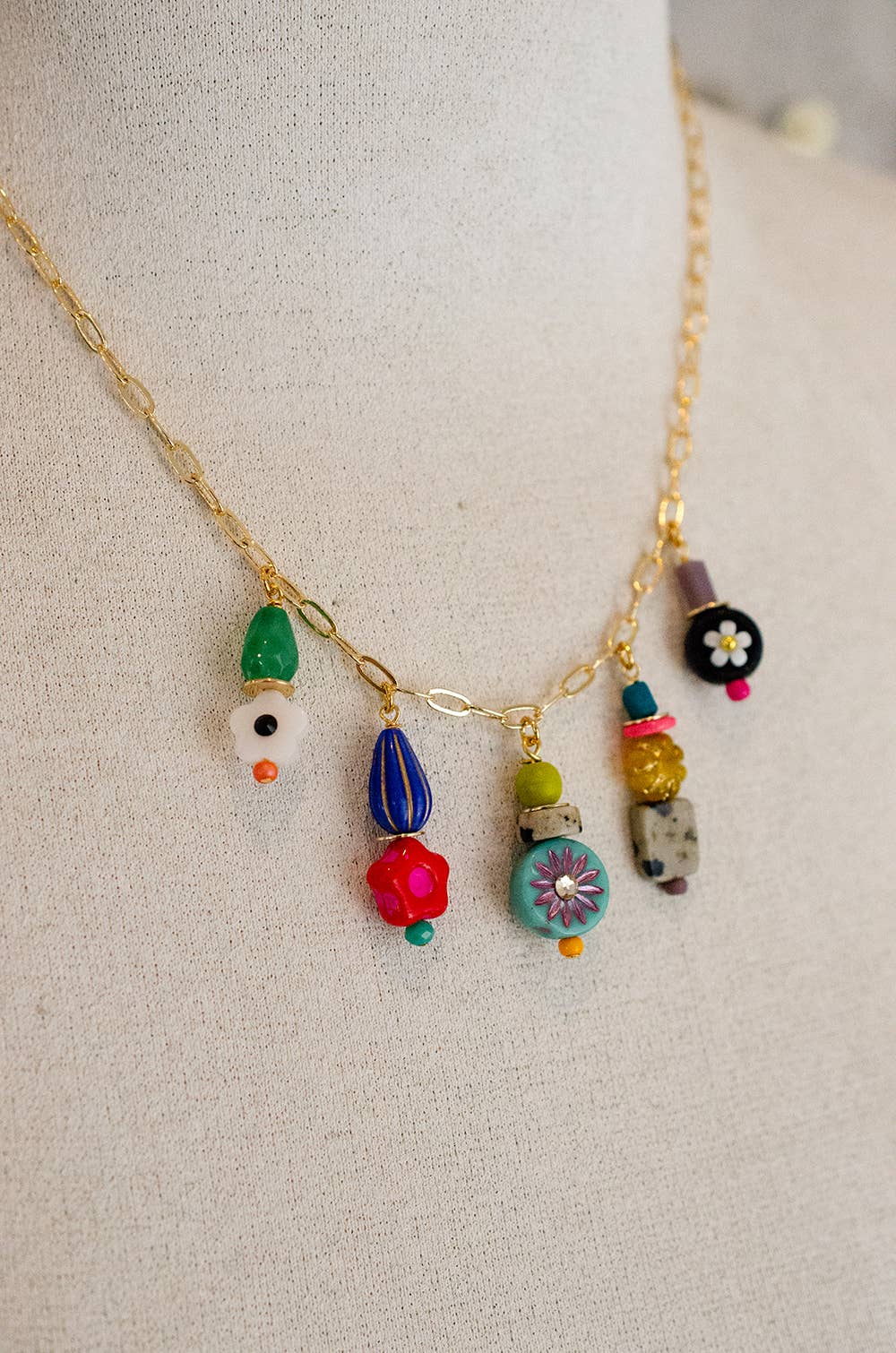 Add some color to your outfit with this beaded charm necklace, The Piper Beaded Necklace is not only colorful but unique and one of a kind. The colorful charm necklace is handmade from an assortment of unique glass, gemstone and czech beads.