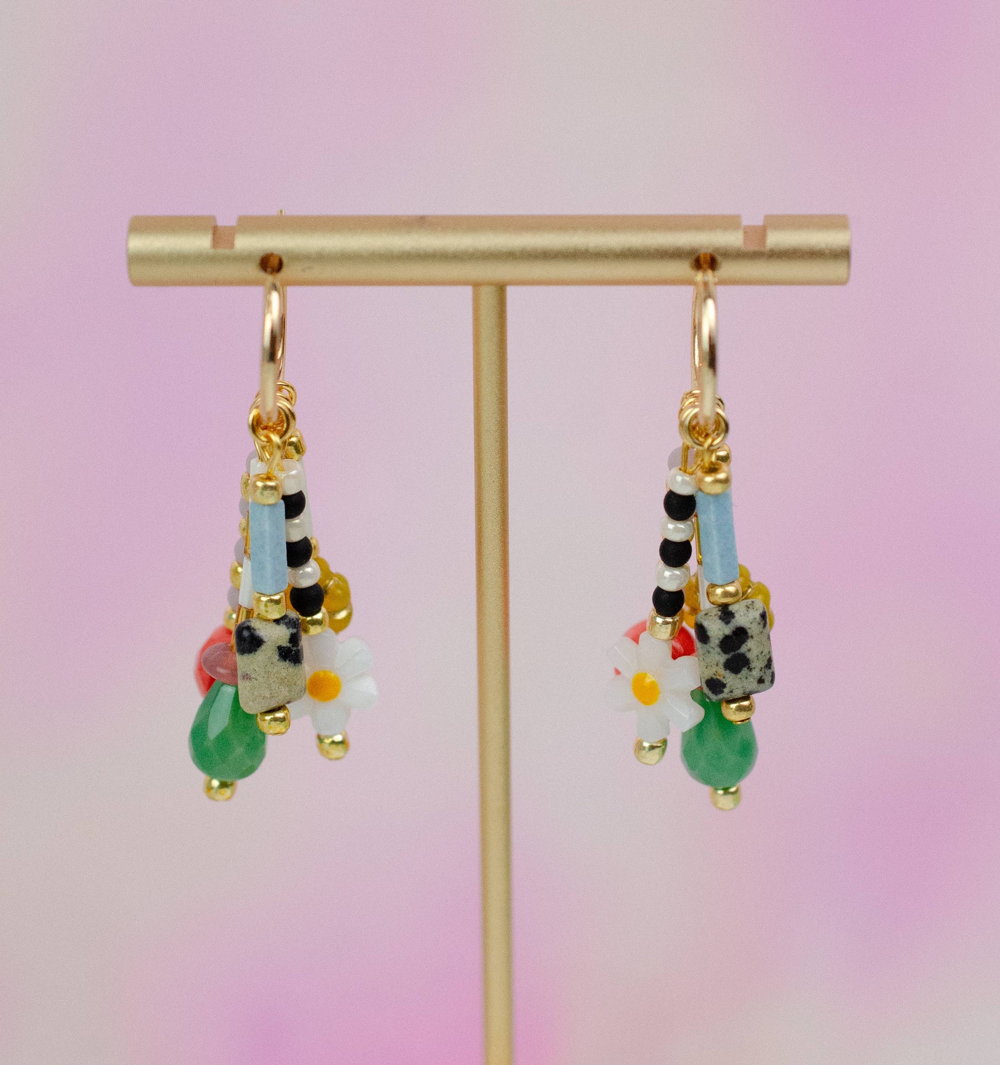 Earrings; Della Dangle (Colorful Beaded Charms, Gold Plated) By Jill Makes