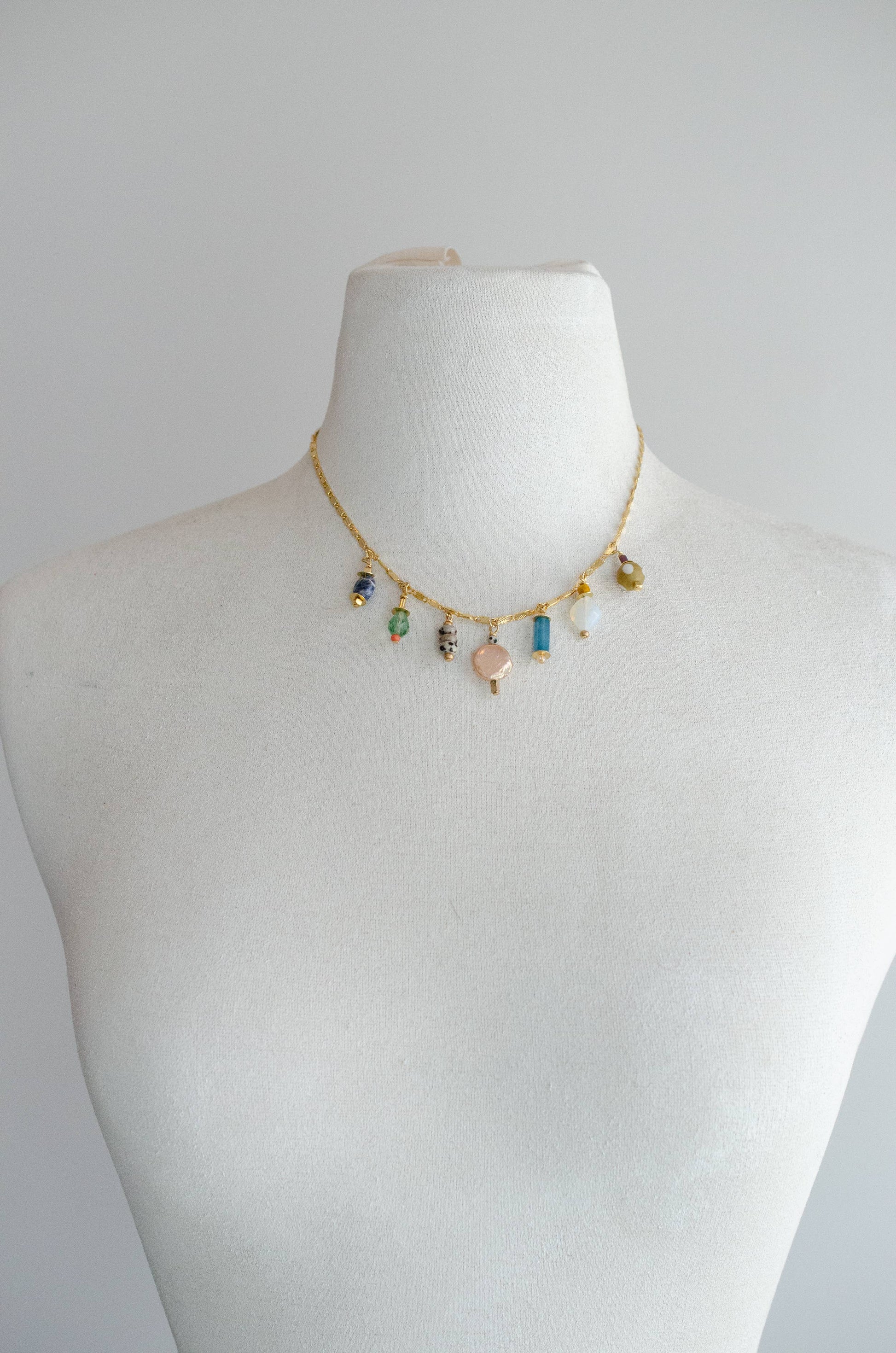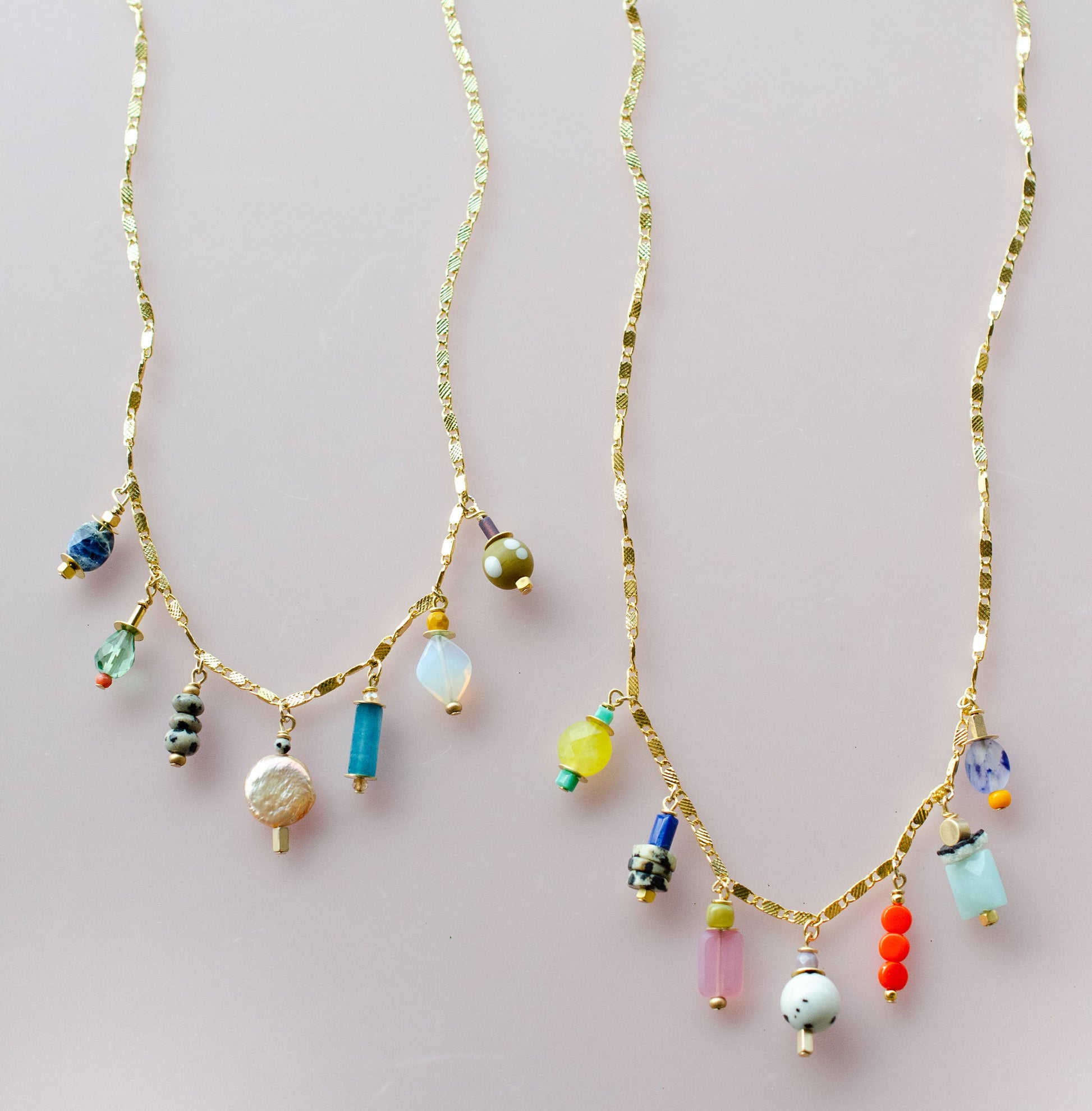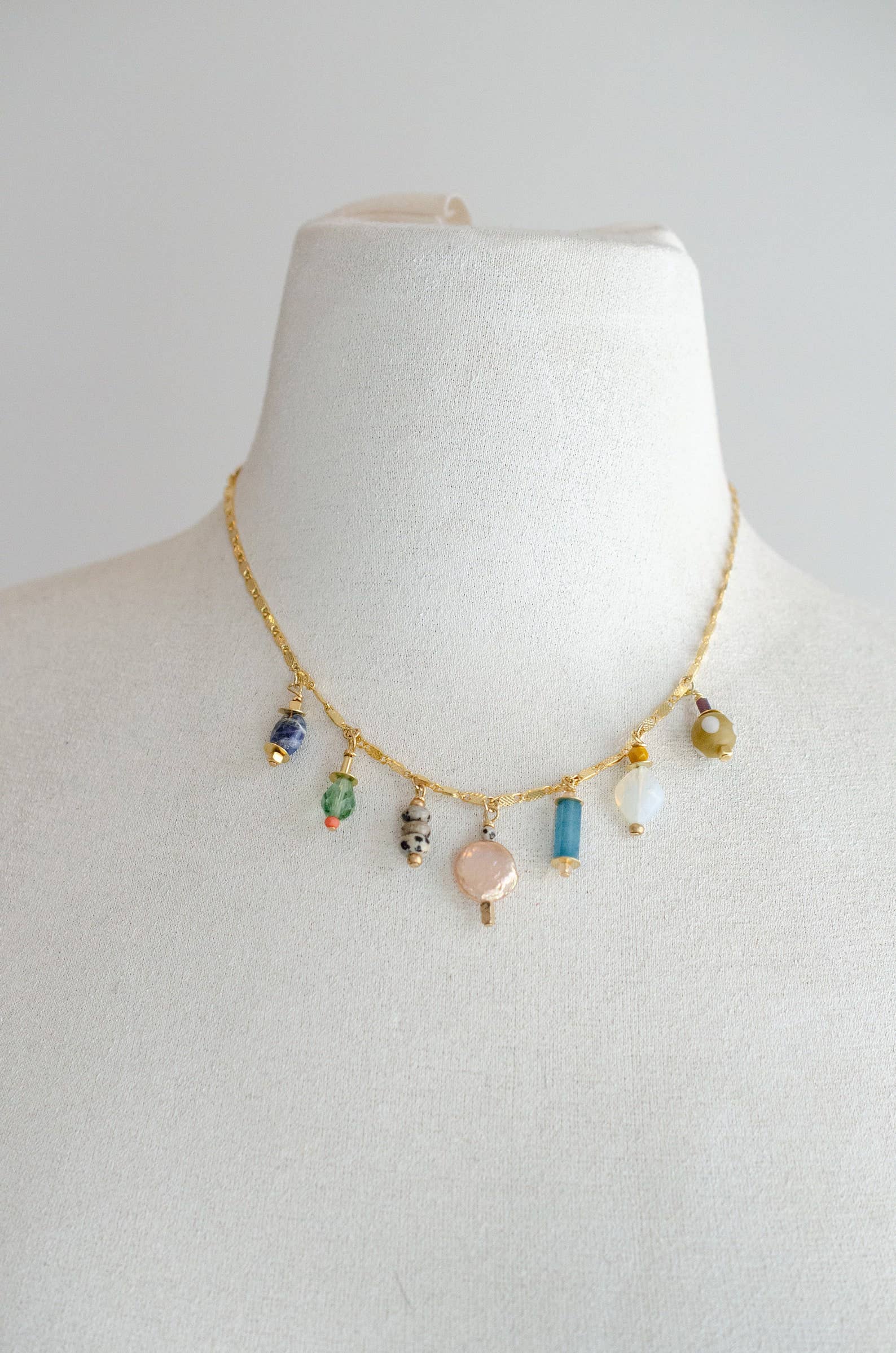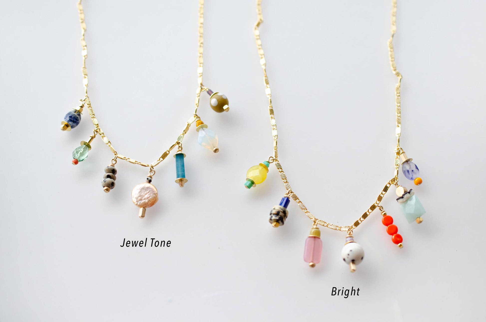 Necklace; Calypso Charm (Bright Beaded Charms, Gold Plated Flat Chain) By Jill Makes