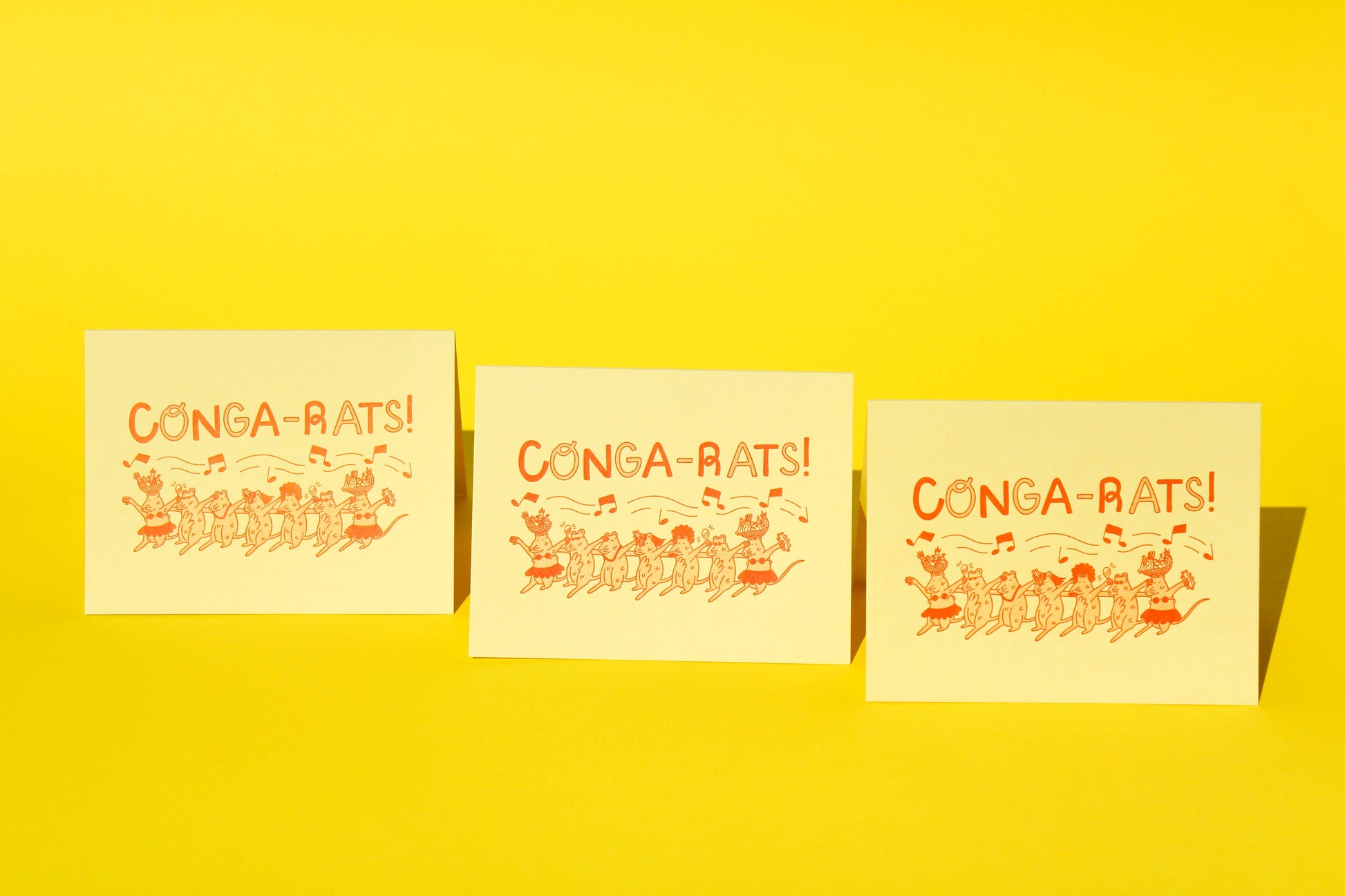 Letterpress Greeting Card; Conga-Rats By M.C. Pressure
