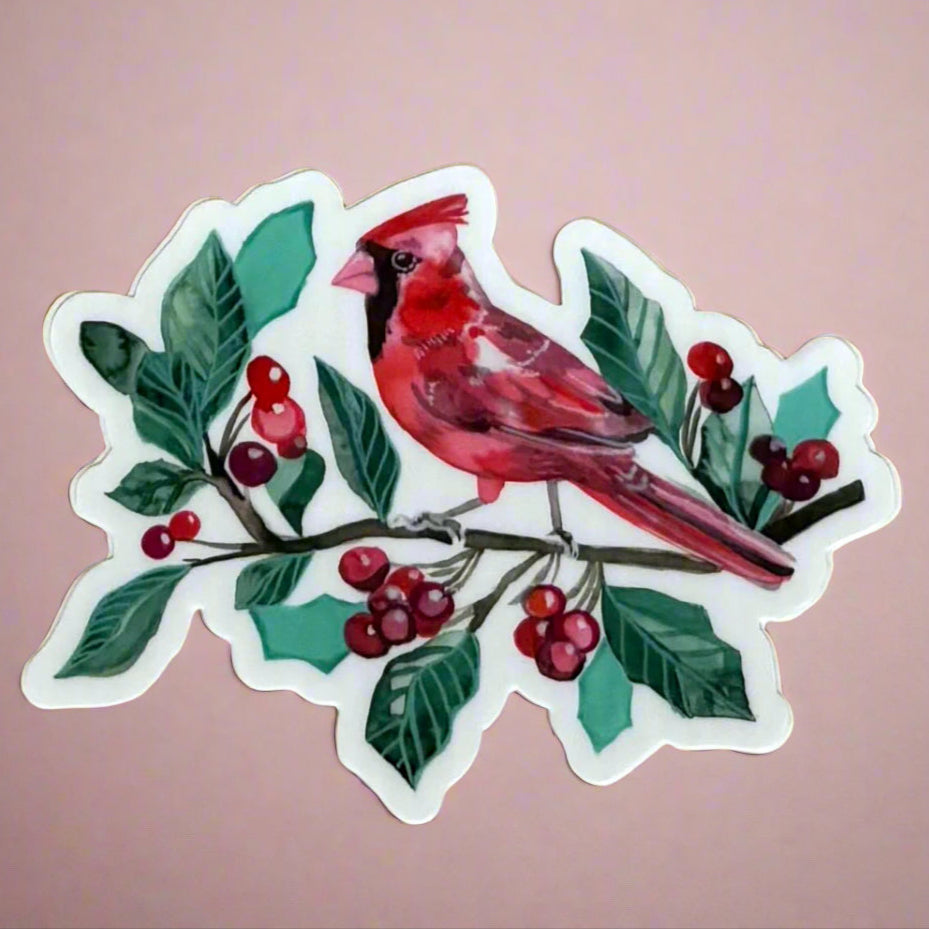 Vinyl Sticker; Cardinal in Berries - Made By Shellie