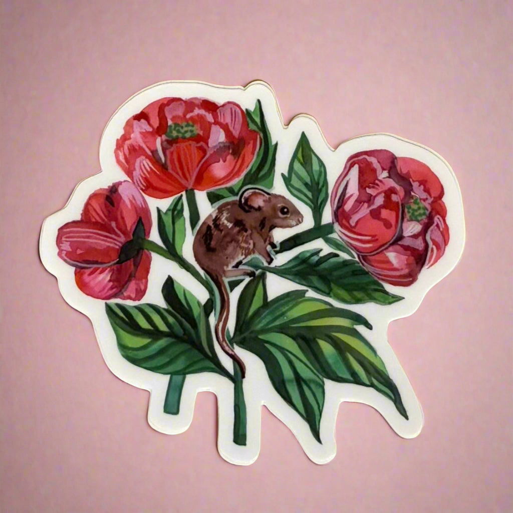 Vinyl Sticker; Mouse in Flowers - Made By Shellie