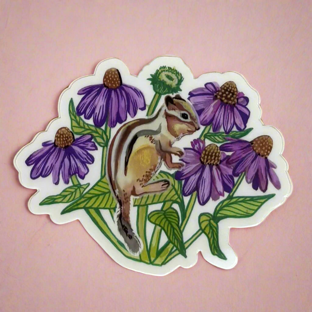 Vinyl Sticker; Chipmunk in Daisies - Made By Shellie