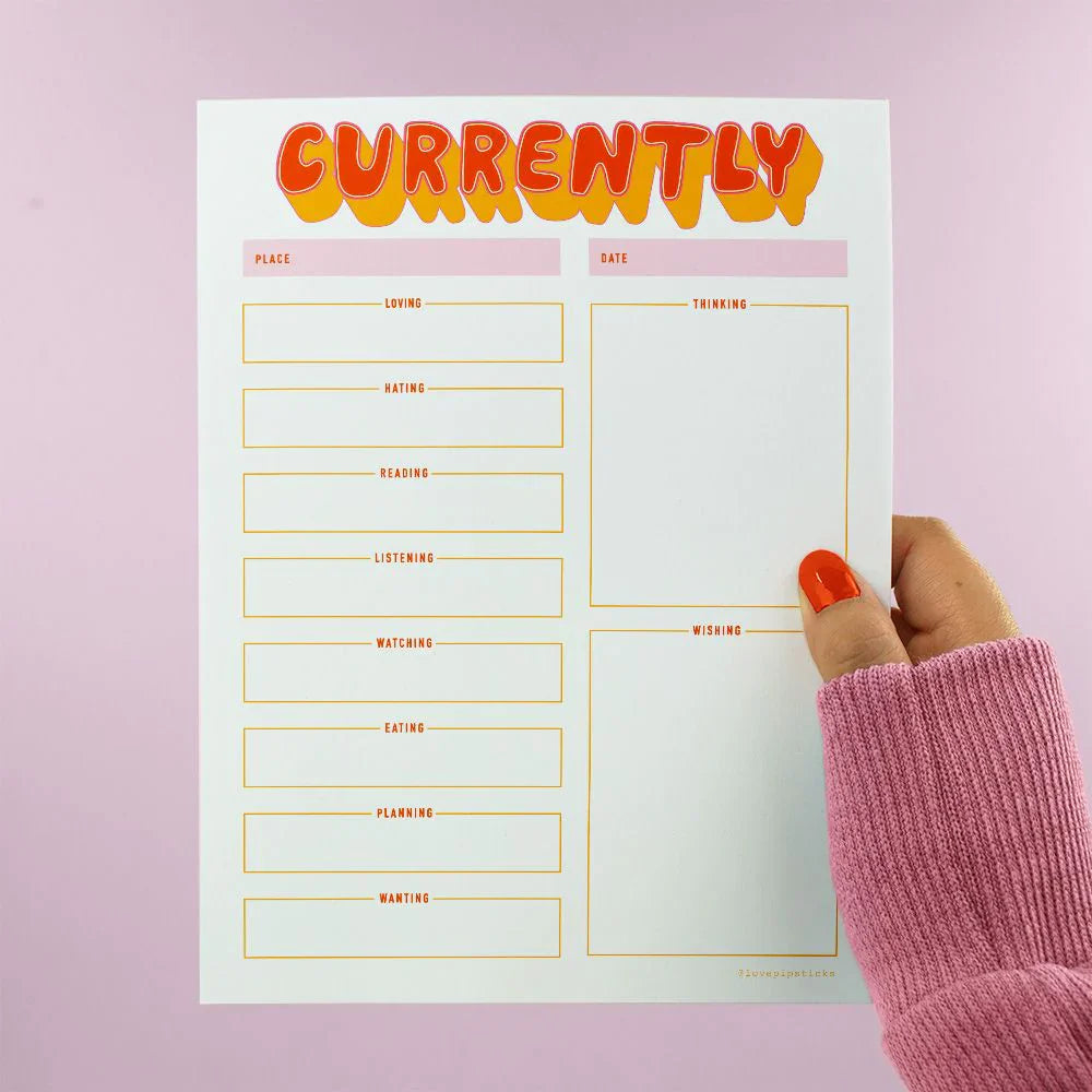 Currently, this pretty Pipsticks notepad is just the thing to keep your to-do list in order, jot down brilliant ideas or doodle during your next conference call! Jot down all of your important thoughts and likes in the moment. Stay current, with yourself!