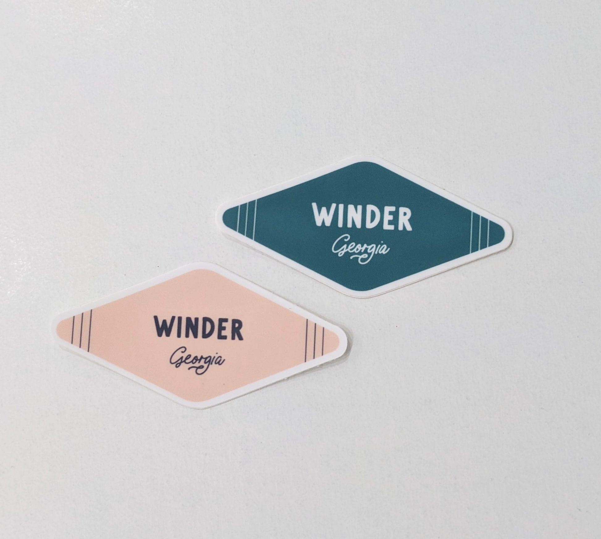 Winder is wonderful! Show your love for Winder with this vinyl sticker. The sticker has a smooth matte finish and comes in two colors: peach and teal.