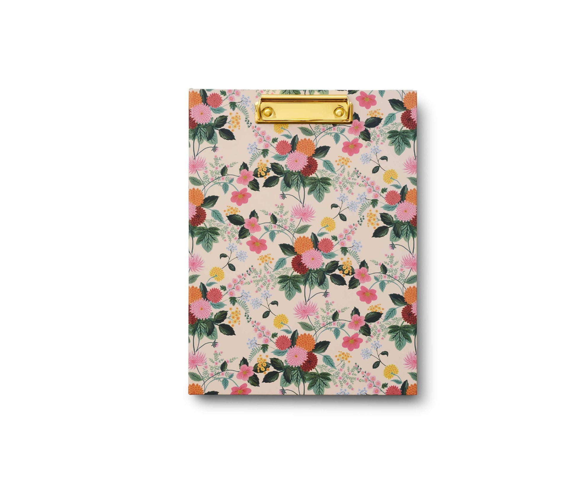 Stay organized in style with the Dahlia Clipfolio by Rifle Paper Co! This colorful and quirky clipfolio features a beautiful dahlia design and is perfect for keeping all your important documents and notes together. Say goodbye to boring office supplies and hello to a fun and functional addition to your workspace!