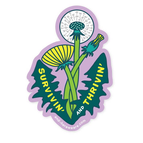 - Sticker says, "Surviving and Thriving"