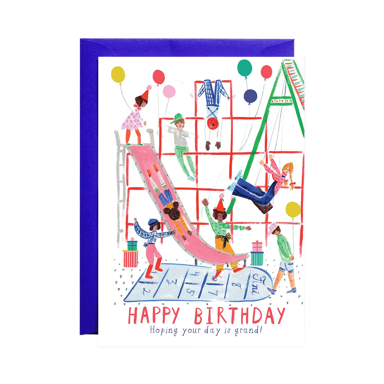 Birthday Card; Down the Slide with Balloons By Mr. Boddington's Studio