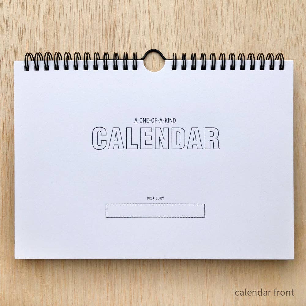 - Front: "A One-of-a-Kind Calendar Created by" in black ink