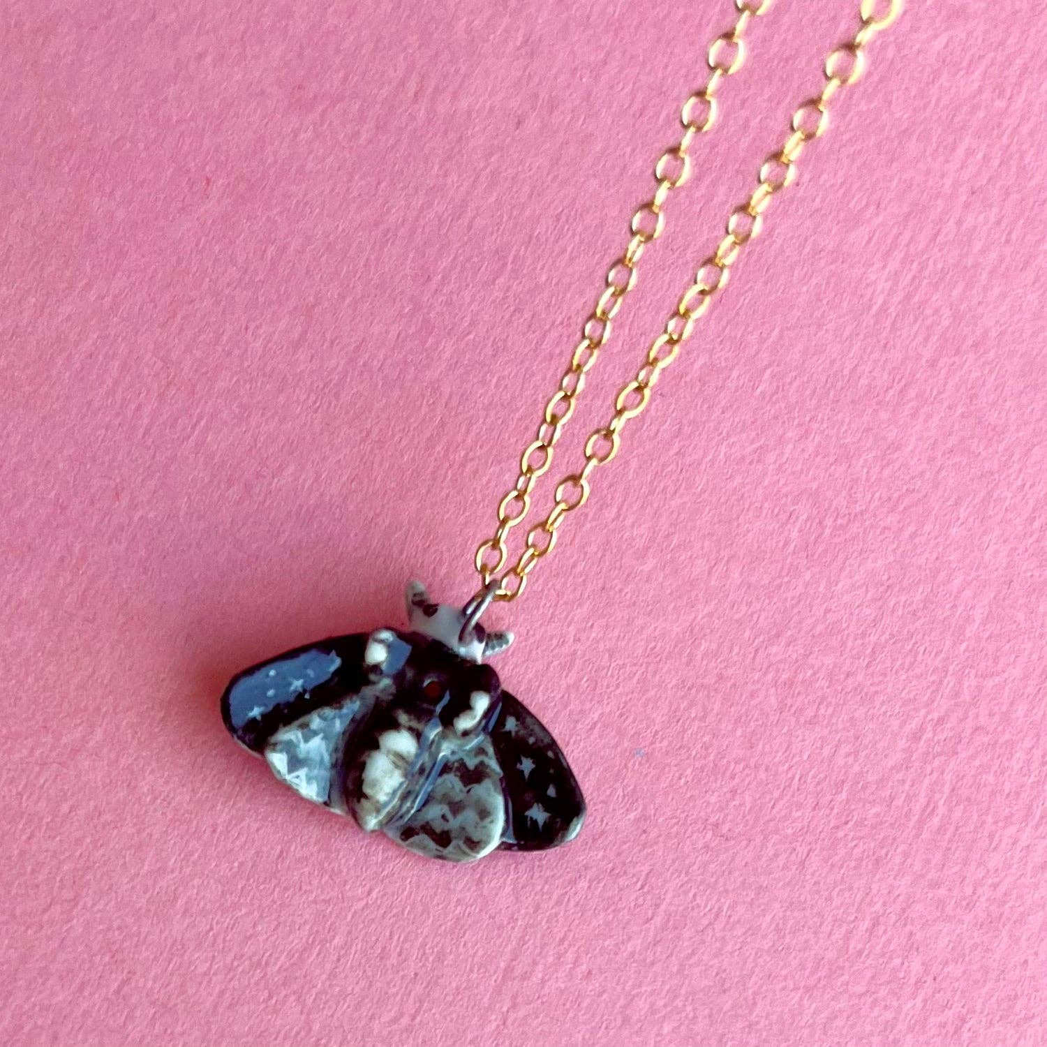 Necklace; Dream Moth By Camp Hollow (Hand-Painted Porcelain, 24k Gold Steel Chain)