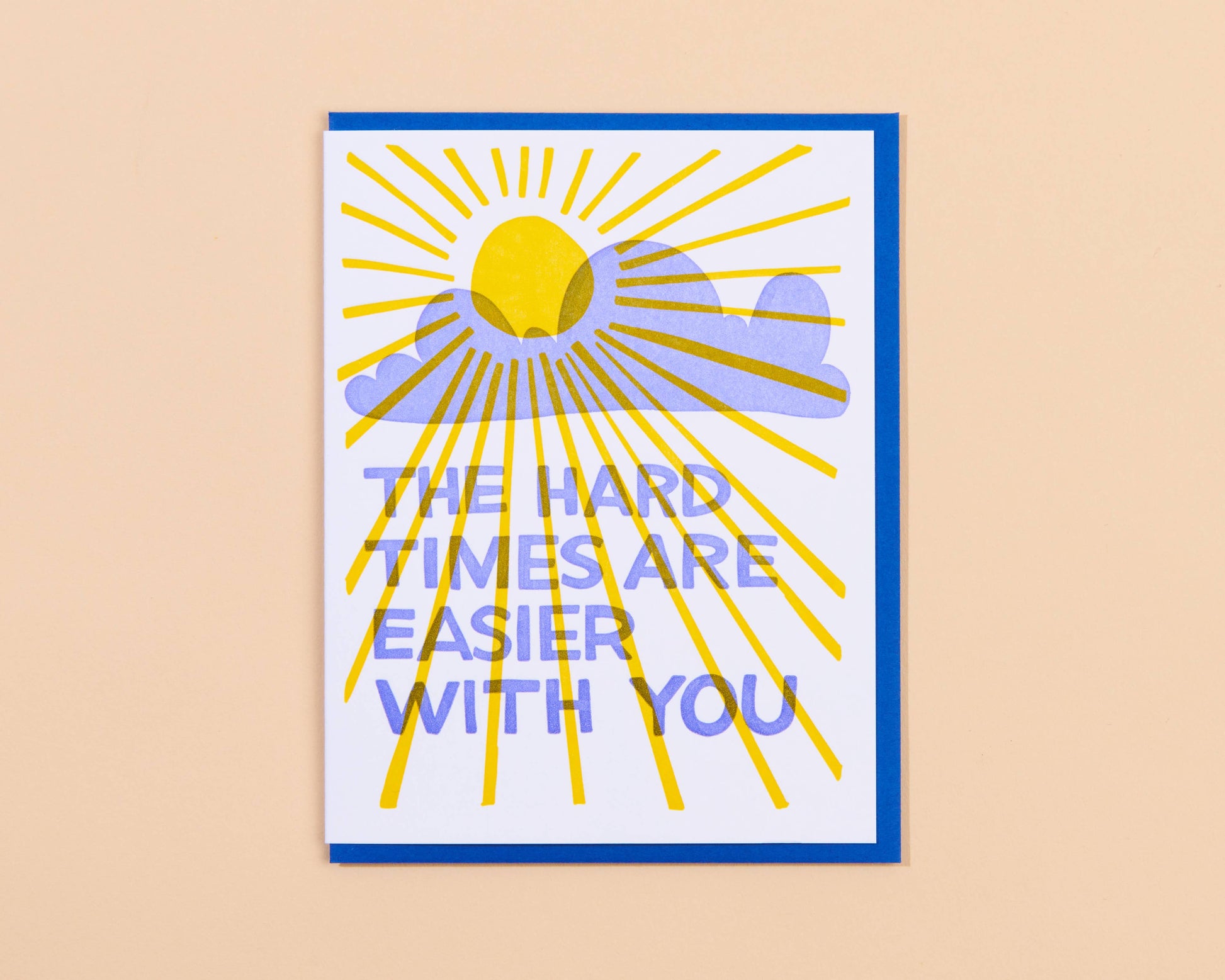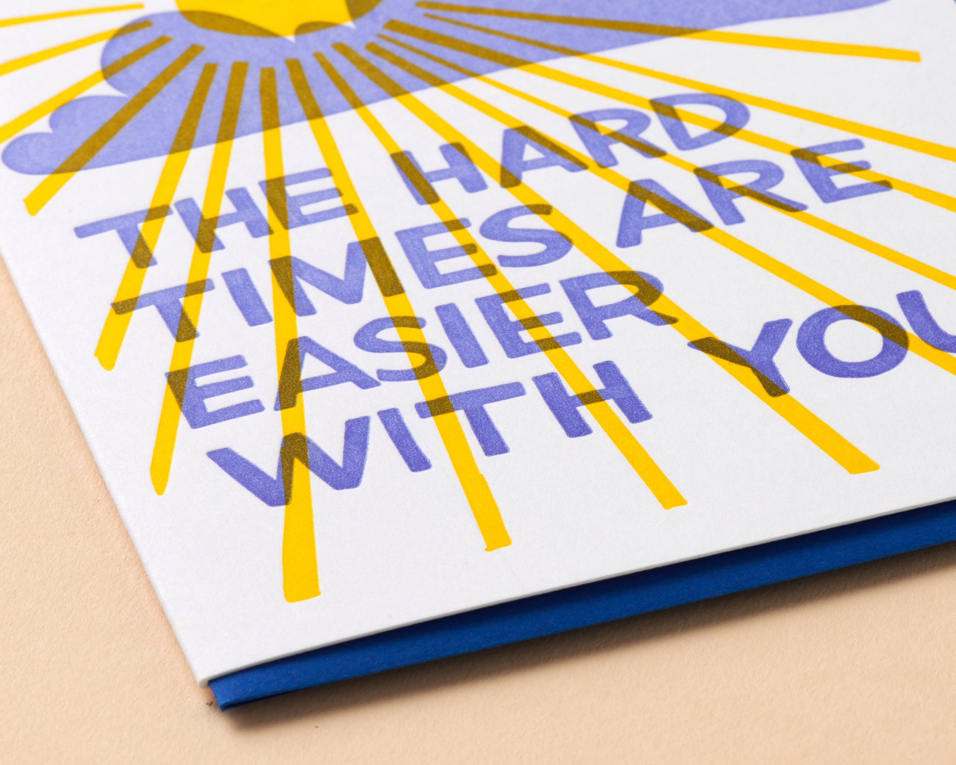 - Card reads: "The hard times are easier with you", with a sun in center, shining through a cloud.