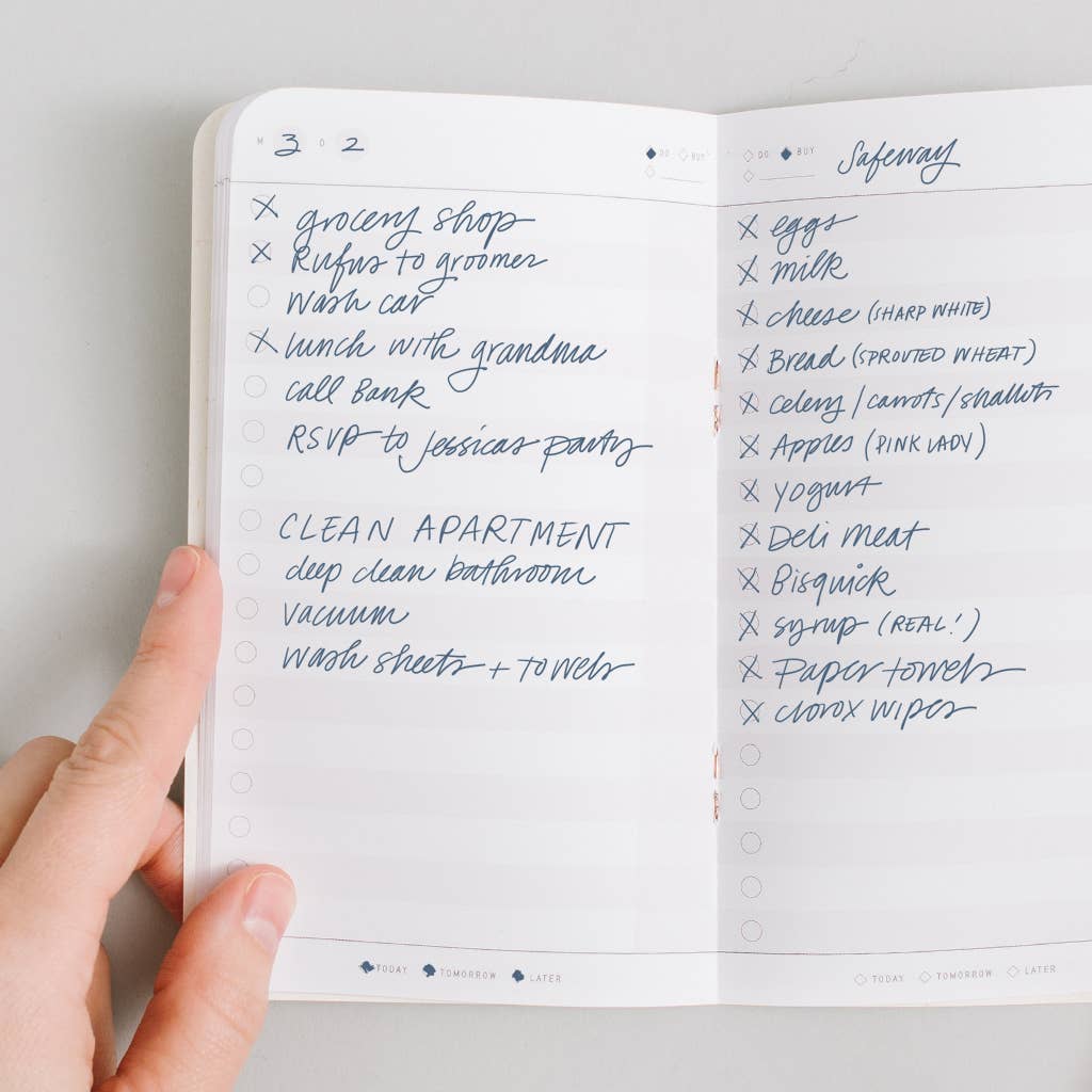 The Everyday Checklists Notebook is your new go-to notebook for your every day. Perfect for daily to-do's, projects, or shopping lists, the minimalist design invites organization and clarity to your tasks. Designed to fit in a pocket or clutch, these metallic-gold speckled paper workhorses are made to be carried everywhere, every day.