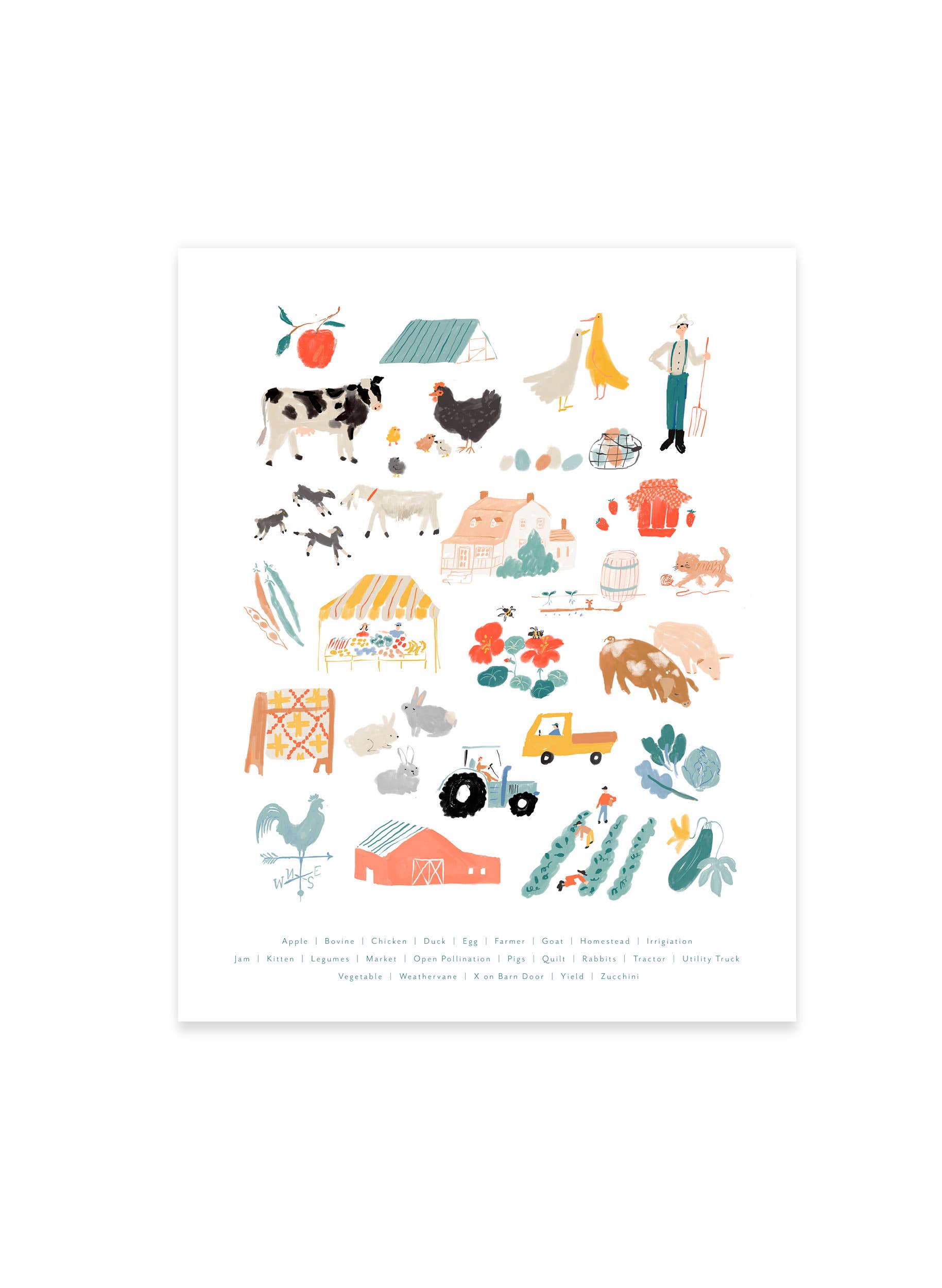 Wake up your shelves or walls with brightly illustrated art prints. A farm inspired print, perfect for any homestead. Farm life never looked so good (on your walls or shelves)! Add a pop of color to your home with this charmingly illustrated alphabet print. Now your decor can be as interesting as life on the farm.