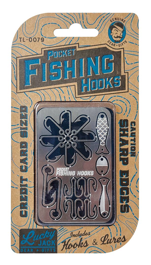 Pocket Fishing Hooks: Part of the BRAND NEW Adventure Card series by Lucky Jack (an exclusive "USA Design")! Pop out the item, use as needed, then return it to the magnetic backing card (included) for storage in your wallet again.