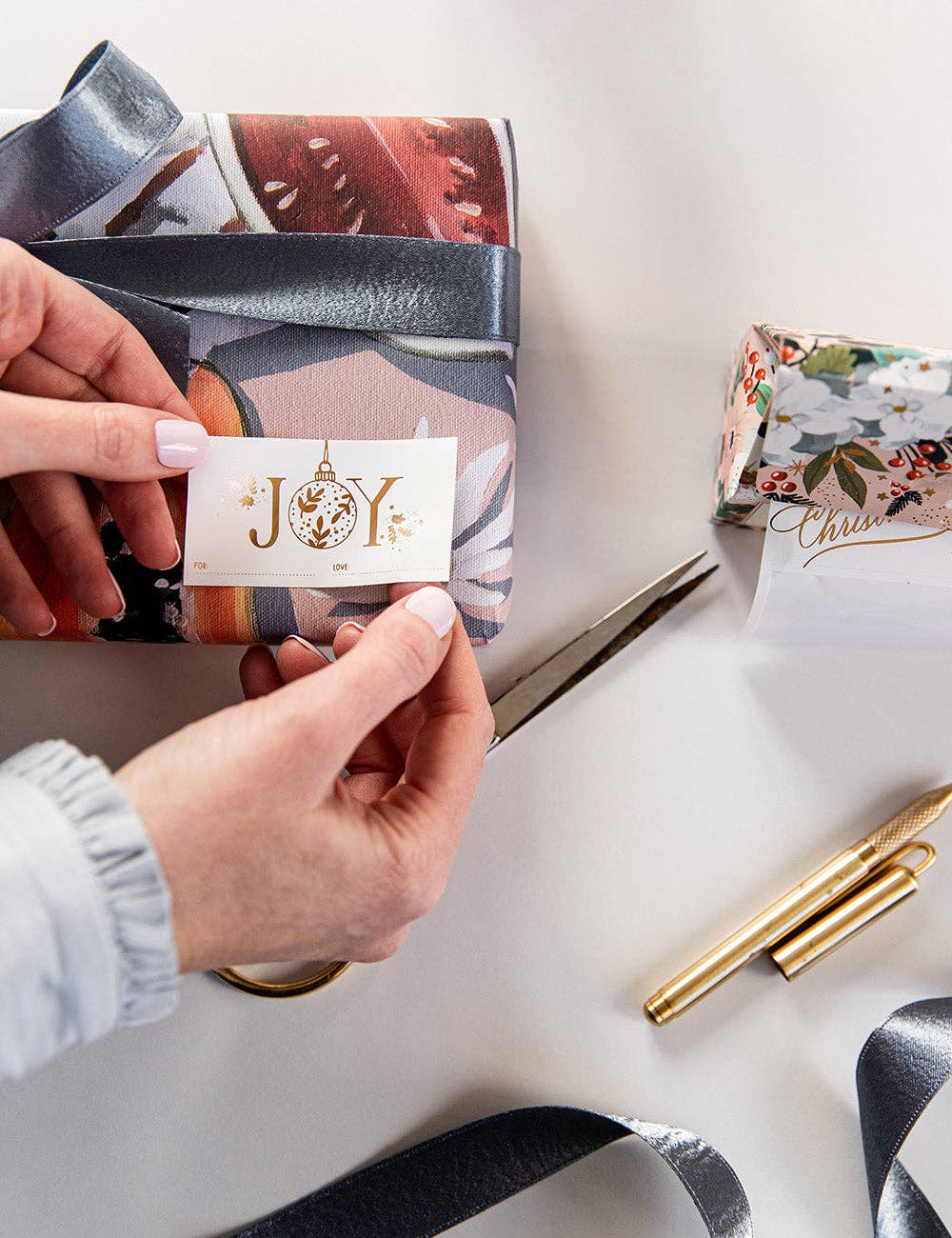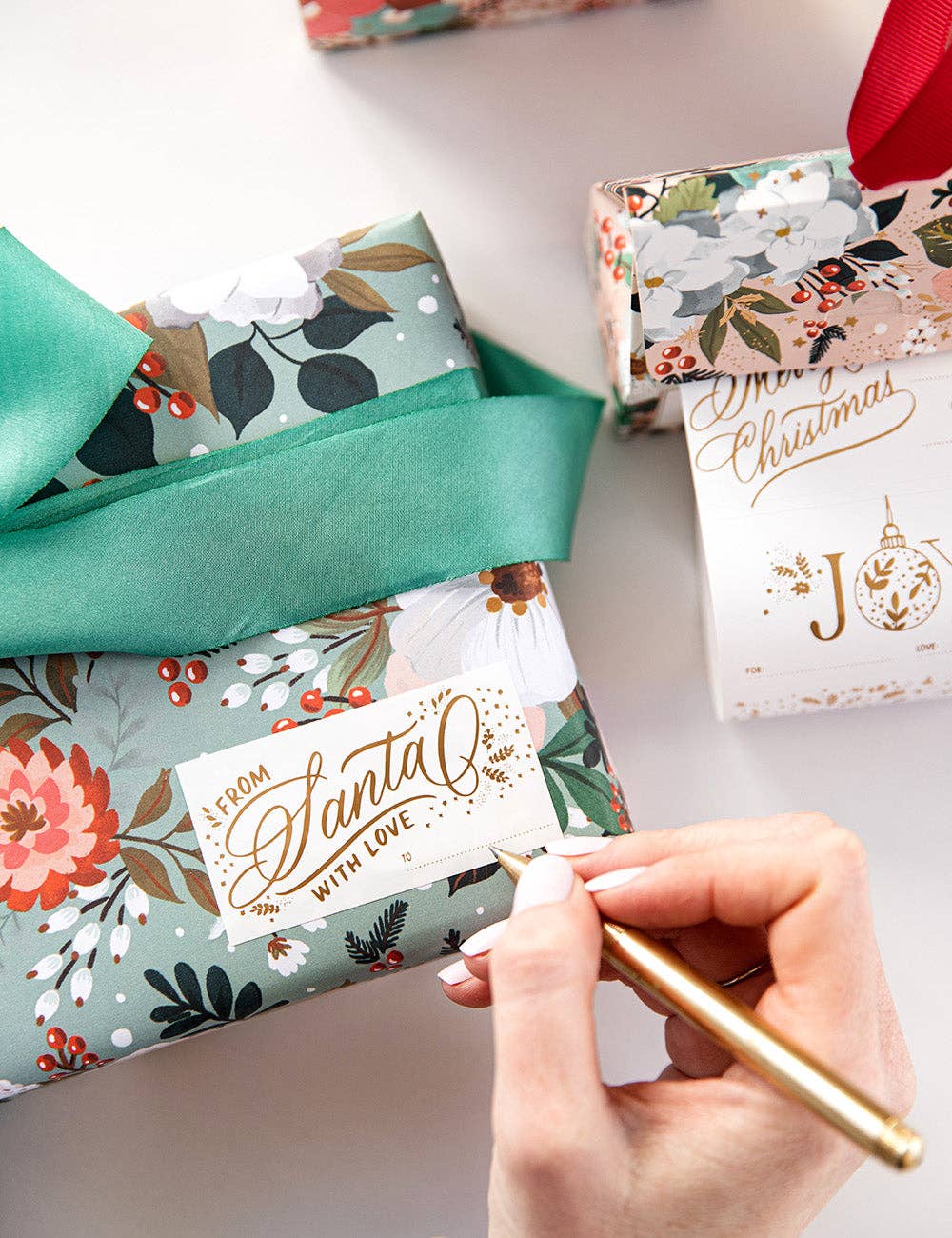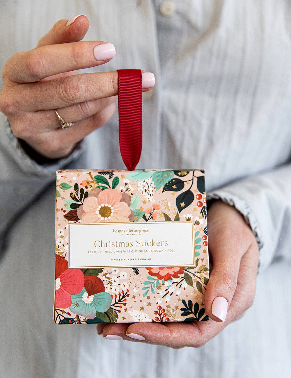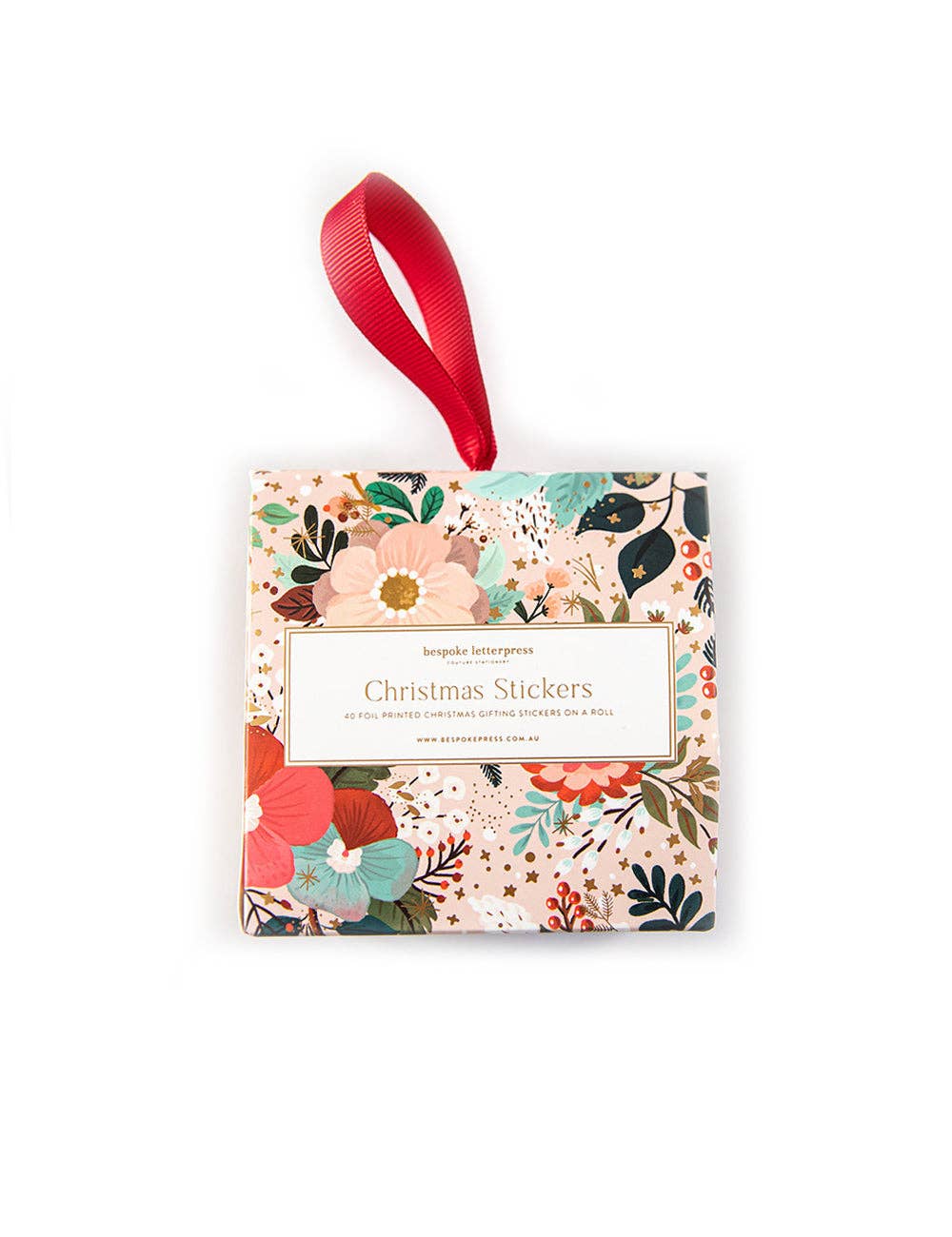 Christmas Stickers On A Roll; Floral Fields (40 Pack, Gold Foil)