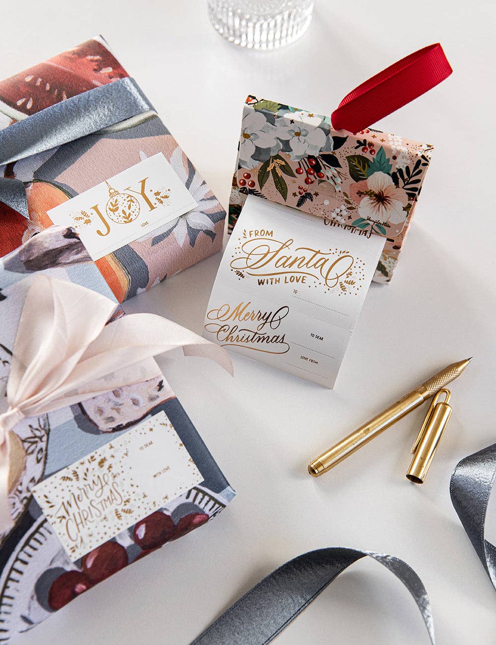 The most adorable box of gold foil printed adhesive stickers. Boxed within the cutest box, with rear dispenser for beautiful and fun Christmas gift wrapping!