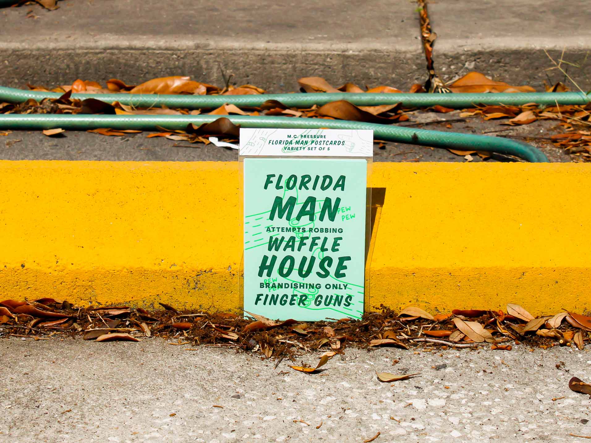 Florida Man, You know him, the state’s infamous super star. Pulled straight from headlines, M.C. Pressure has illustrated a set of five postcards in honor of our favorite Florida hero.