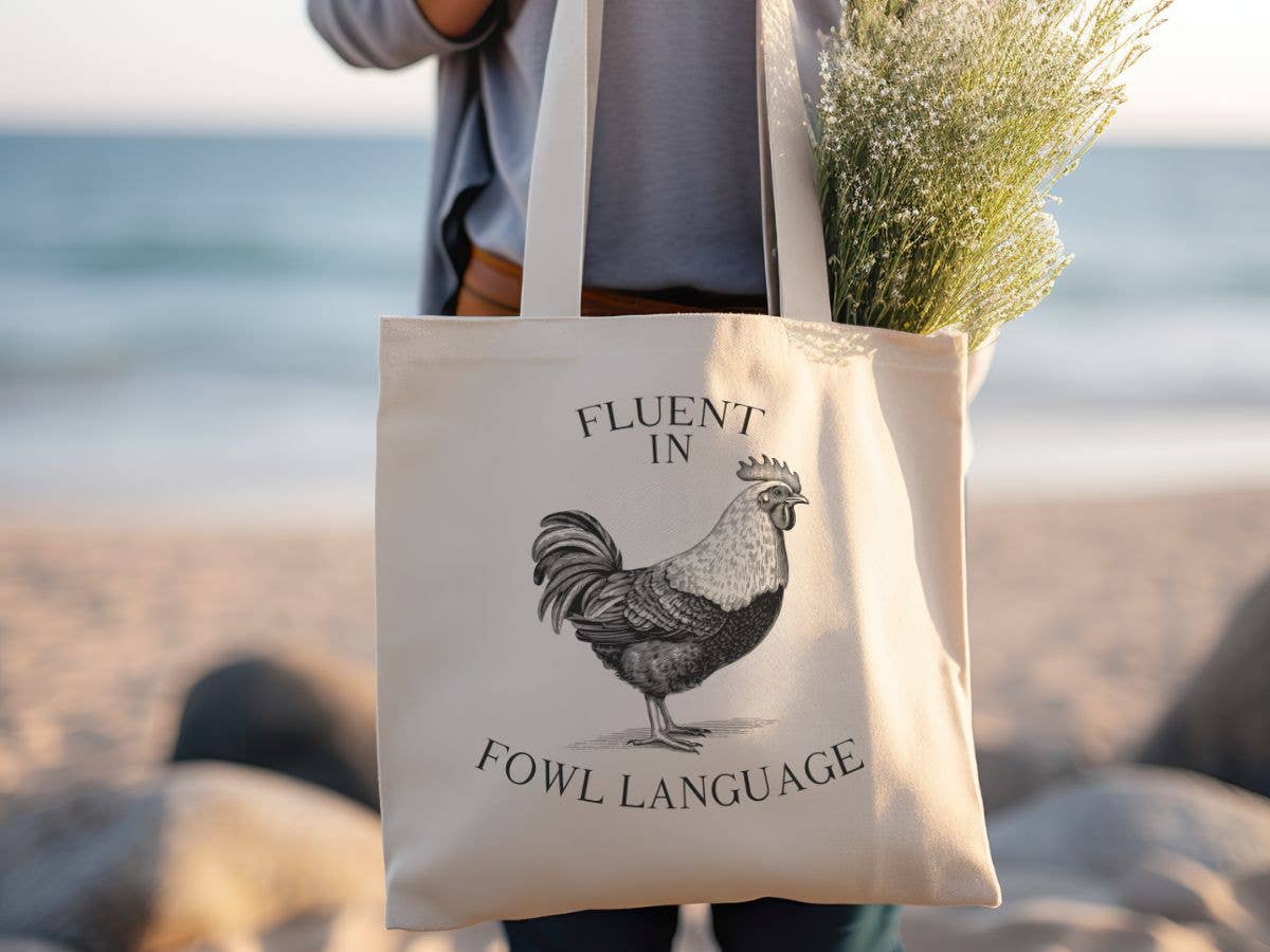 Canvas Tote Bag; Fluent in Fowl Language (Funny Chicken)