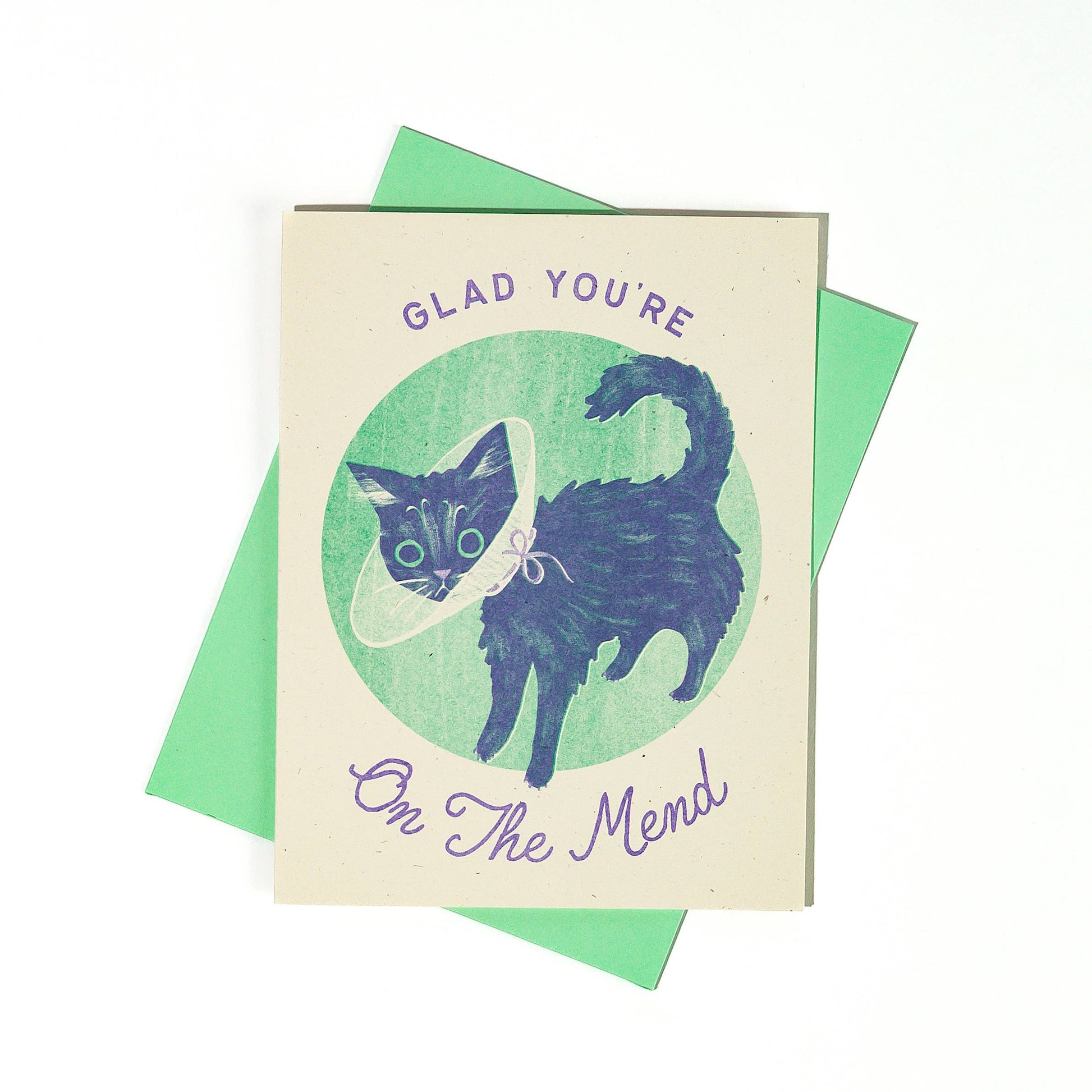 Sympathy Card; Glad You're On The Mend Cat (Risograph Card)