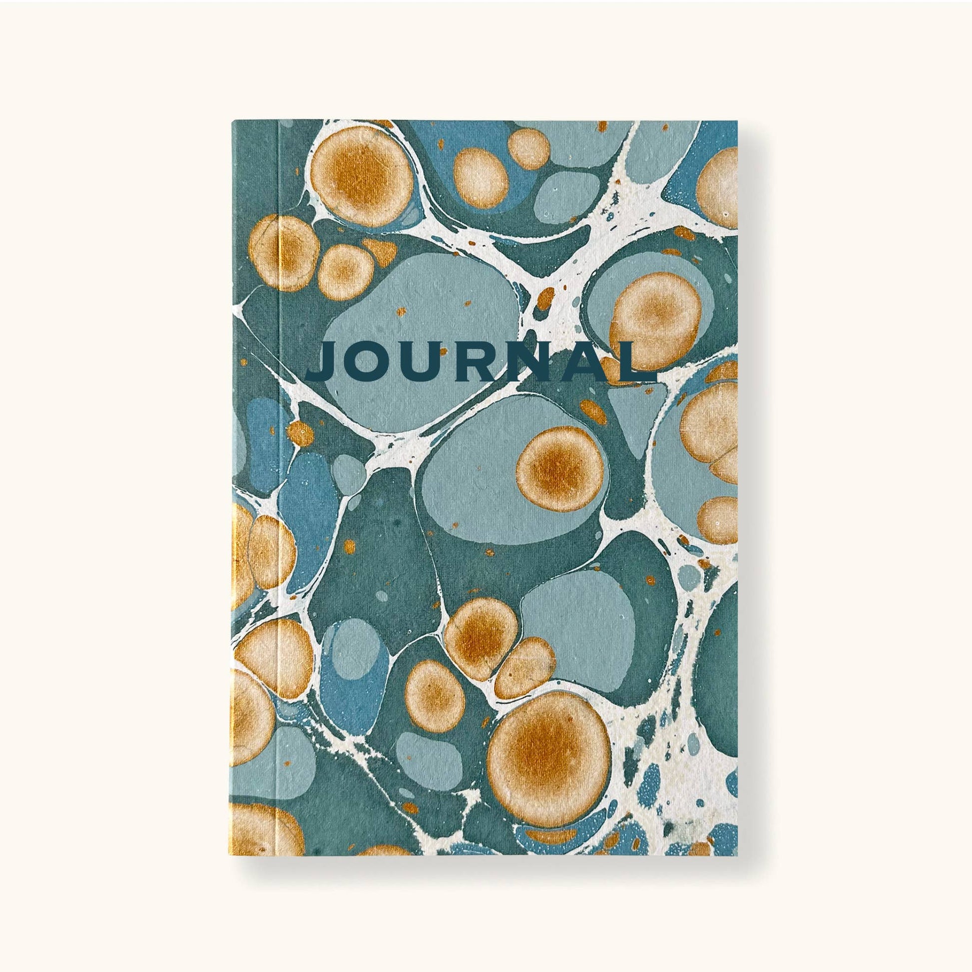 Beautiful Journals with an original marbled print cover in green, blue & gold inks on thick handmade paper - each one is unique. A lovely book with a variety of uses and perfect for journaling. Some ideas for use are diary, ideas book, scrap, or sketch book. Contains an assortment of plain and lined pages, with kraft envelopes and pockets sewn into the binding – allowing for plenty of room for writing, sketching, collaging, and collecting. Use the glassine pockets and envelopes for storing memorabilia, pressed flowers, vintage postcards, or photos.