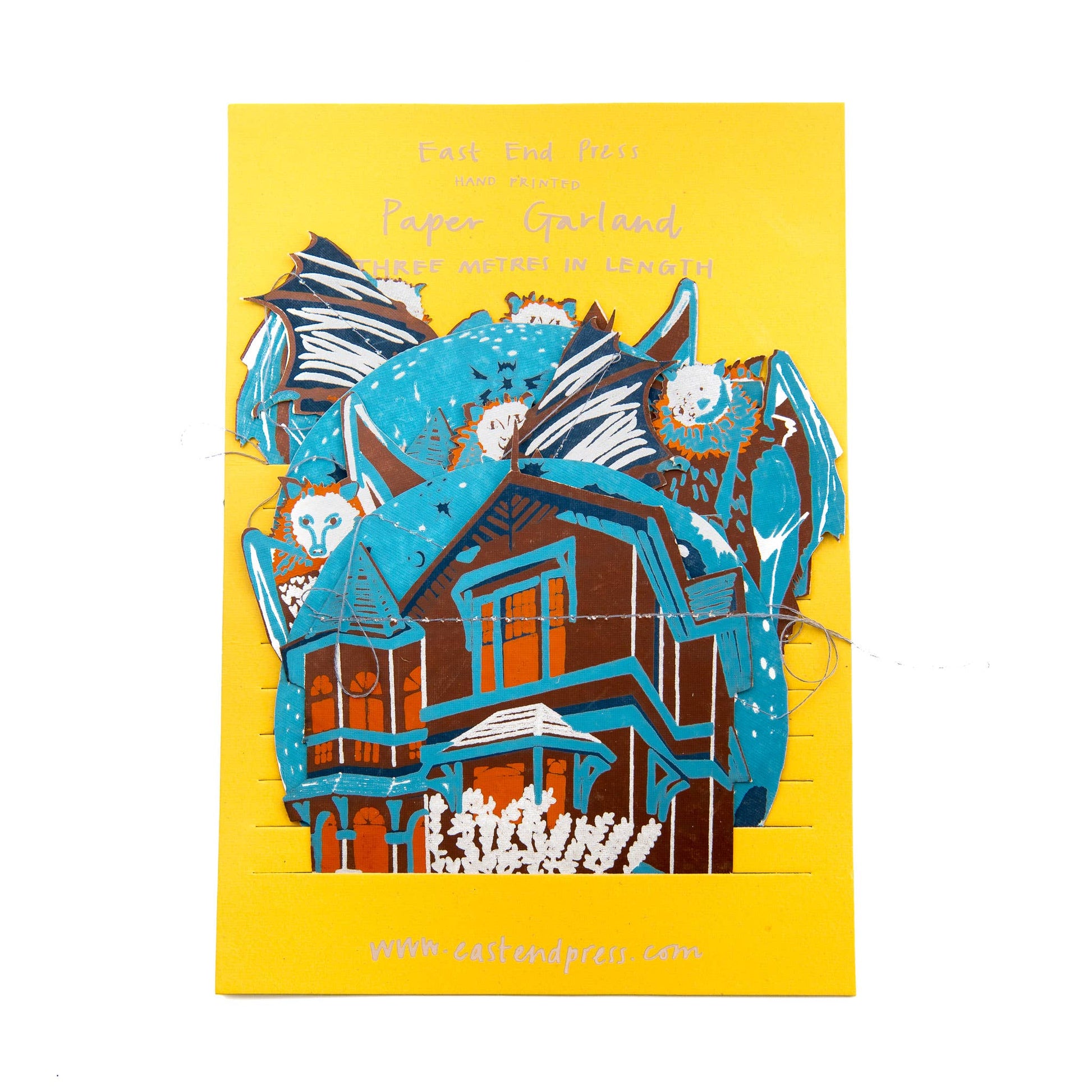 Hand printed three metre long paper garland, featuring ten screen printed paper baubles in jewel tones. The garland is printed on both sides on thick, hand made cotton paper. The shapes are sewn in a random order along strong cotton thread, with hanging loops either end, meaning the garland can be hung straight away! 9 feet long, packaged in a sturdy card backing sheet in a clear cello sleeve so full garland is visible and no risk of tangling features ten paper shapes, sewn along strong cotton thread screen printed by hand on both sides, hand printed by talented artisans in Jaipur. Please note, every garland is hand printed so may vary slightly from the photograph, this just adds to the charm!