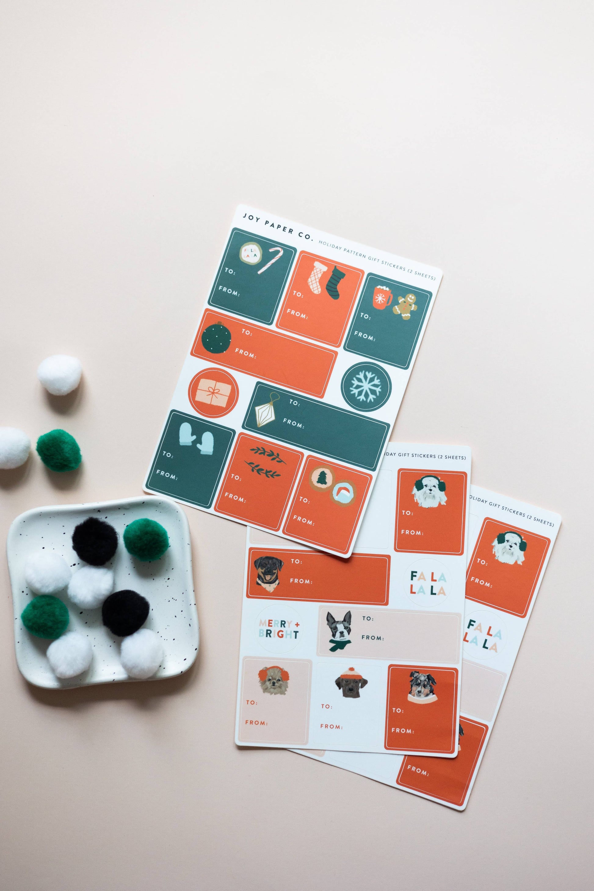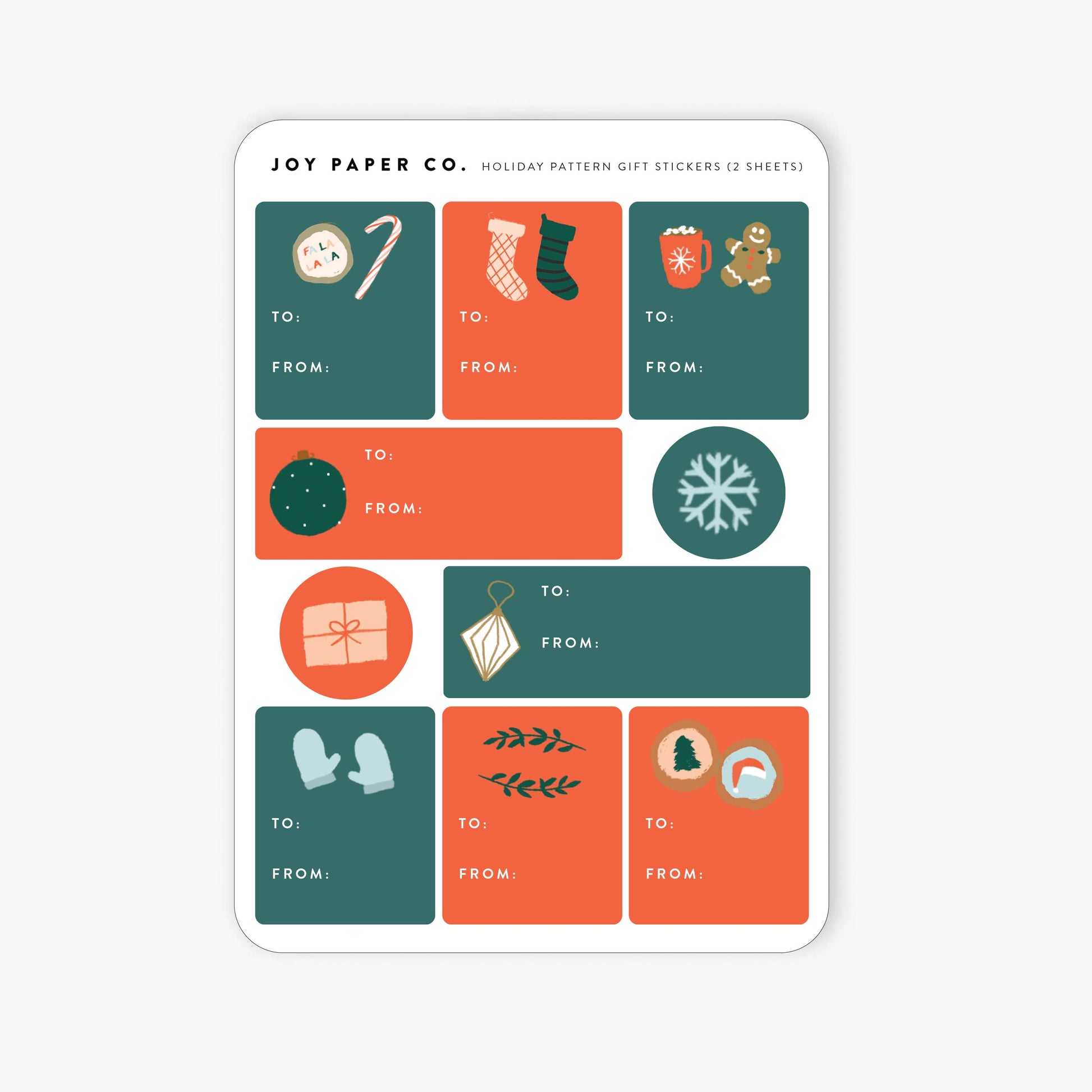 Gift Label Sticker Sheet Set; Holiday Pattern (Set of 2 Sheets, 20 Stickers Total)