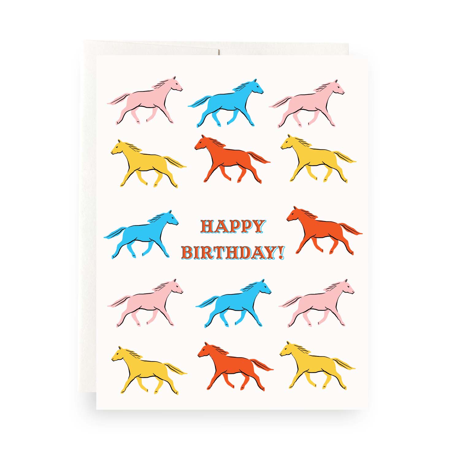 The perfect birthday card a horse lover! Colorful wild horses gallop across the card! The inside is blank for your own personalized message.