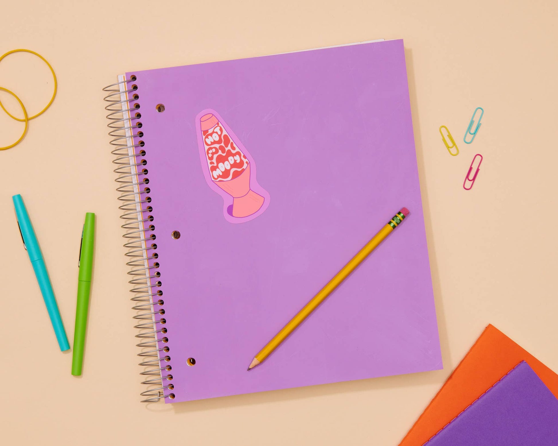 - Sticker reads, "hot and moody"
