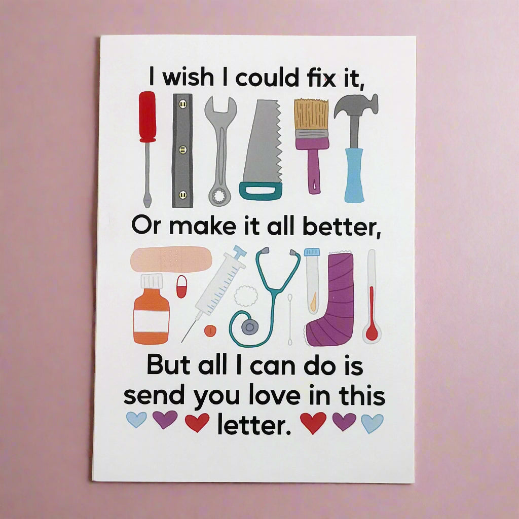 Sometimes you wish you could fix a problem, but all you can do is let them know they are loved. This 5x7" card is blank inside to personalize, and comes with a brown kraft envelope.