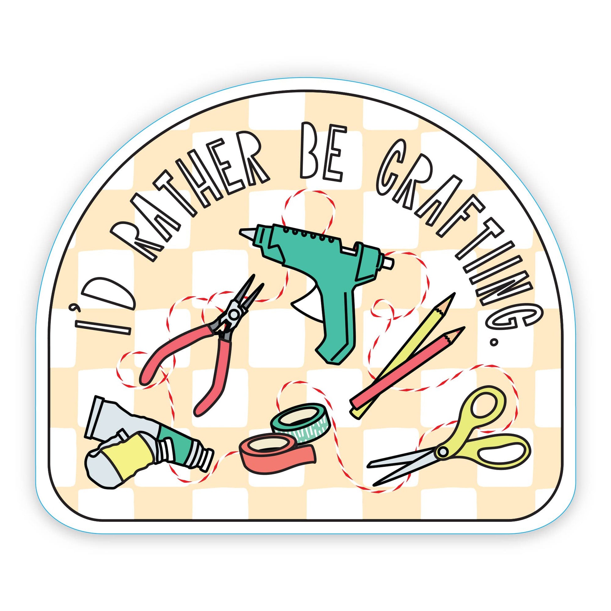 Because I'd rather be crafting. 3" die cut matte vinyl sticker. Durable, weatherproof, dishwasher safe.