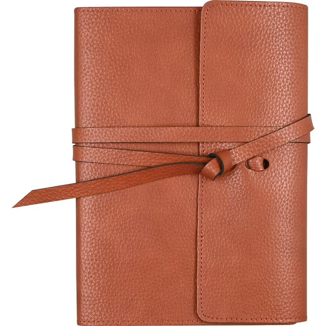 Discover the refined charm of the classic wrap journal, crafted of supple, textured vegan leather. Timeless leather-wrap design is ideal for use as a diary, travel journal, art journal, and more. Inside, crisp, smooth-finish pages invite your personal reflections, sketches, or favorite quotations or poems.