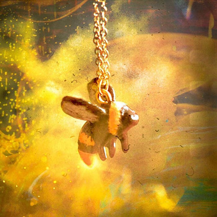 Necklace; Midas Bee By Camp Hollow (Hand-Painted Porcelain, 24K Gold Steel Chain)