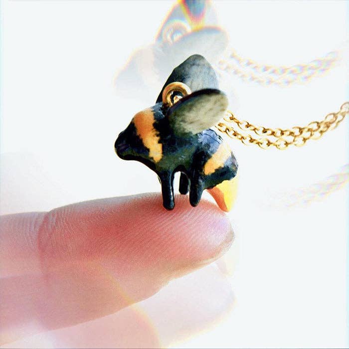 Embrace the spirit of spring with this Midas Bee Necklace! This porcelain pendant features a bumbling bee with delicate wings and a golden sting, making it a buzz-worthy addition to any outfit. Strung on a genuine gold chain, it's a piece fit for the queen of any hive. Due to the handmade nature of this product, slight variations in color and design may occur, making each piece truly one-of-a-kind. Perfect for nature lovers, garden enthusiasts, or anyone who appreciates intricate, handcrafted jewelry.