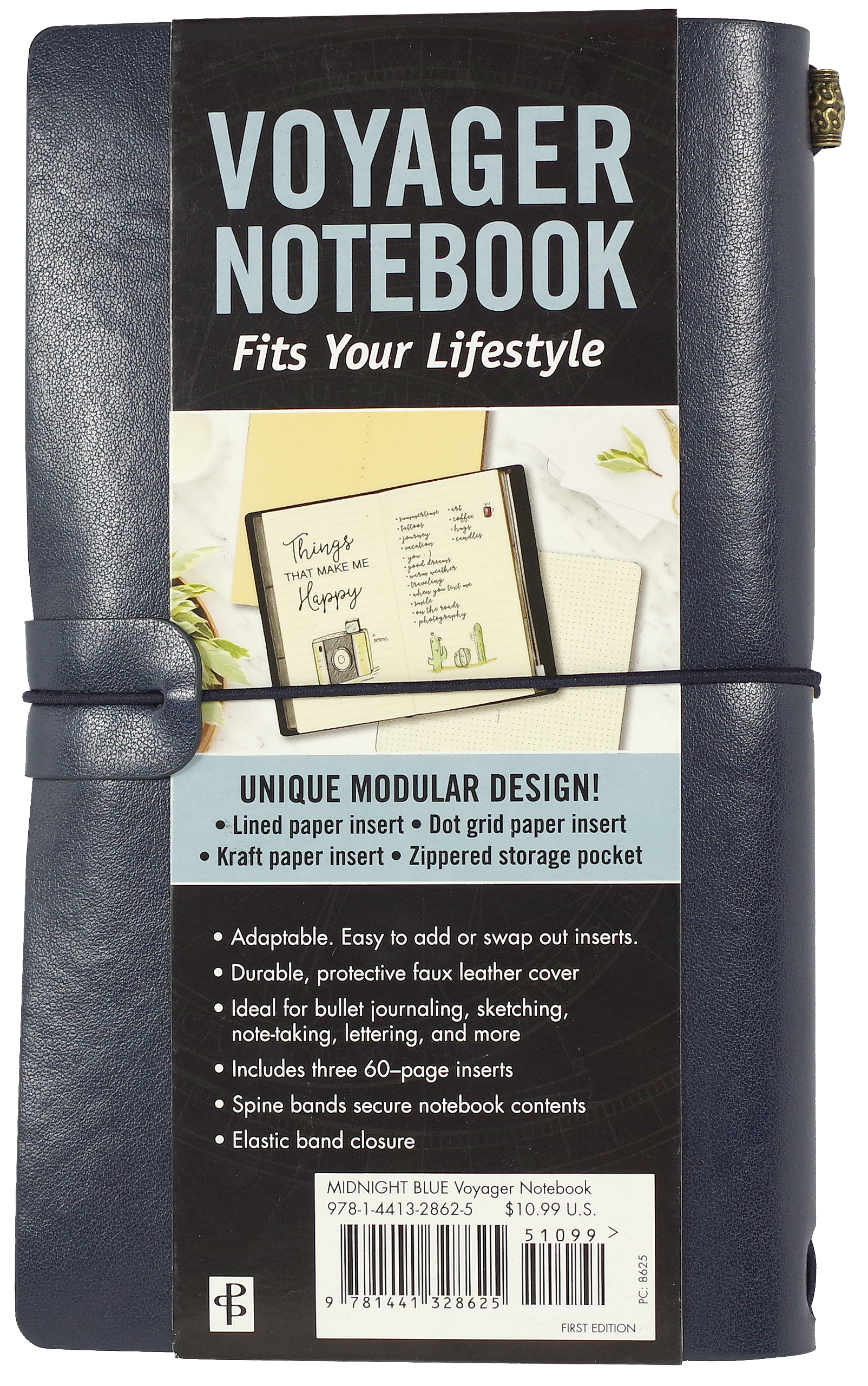 Versatile Voyager Notebook is perfect for journaling, sketching, note-taking, and creative planning on the go! On the outside: A durable, flexible faux leather cover.